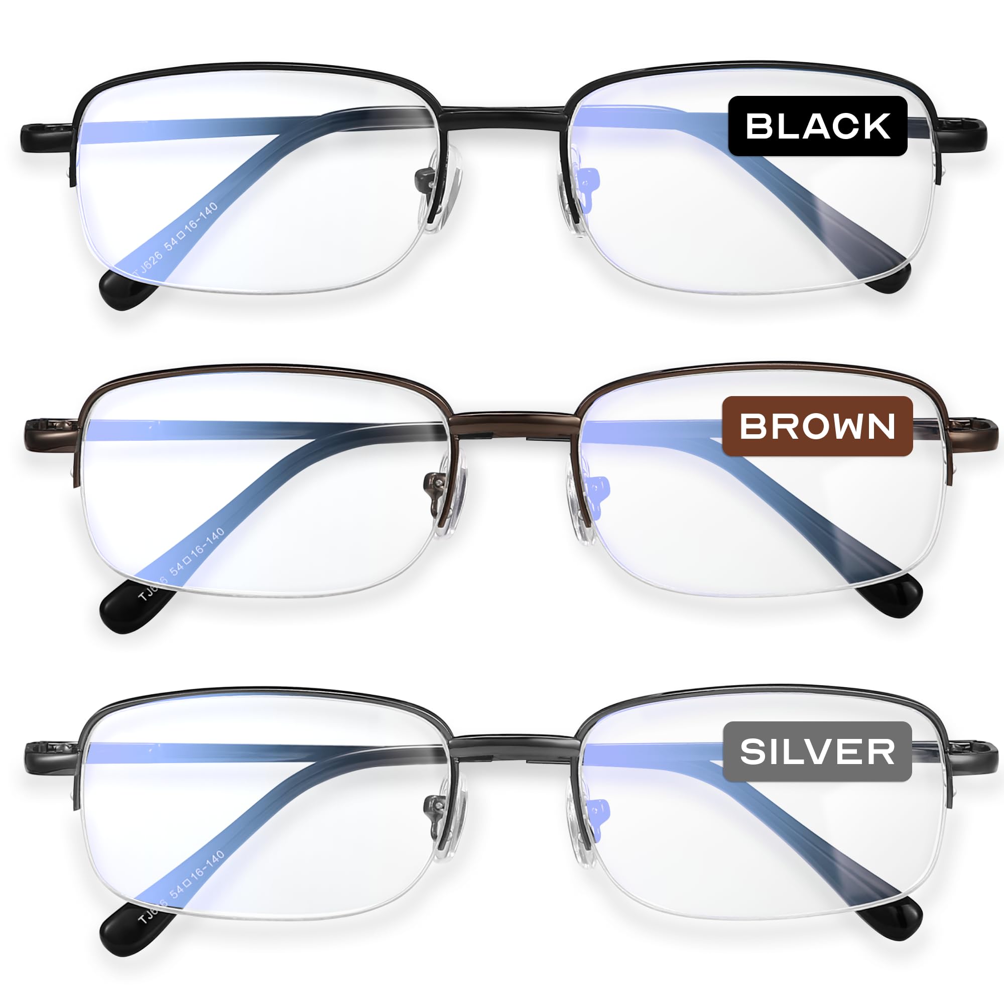 Paquete de 3 lentes de lectura para hombre, bloqueo de luz azul con bisagra de resorte, elegante marco de metal para hombres (+ 2.