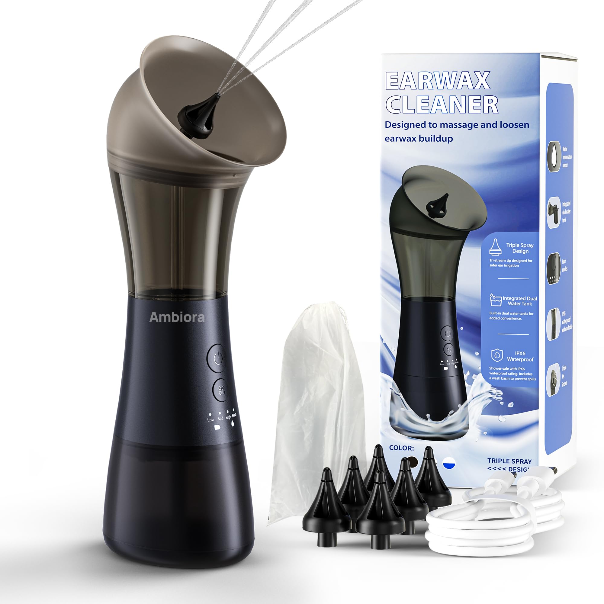 Eliminación eléctrica de cera de oídos, herramienta limpiadora de oídos, elegible para FSA HSA, kit de riego de oídos con tanque d