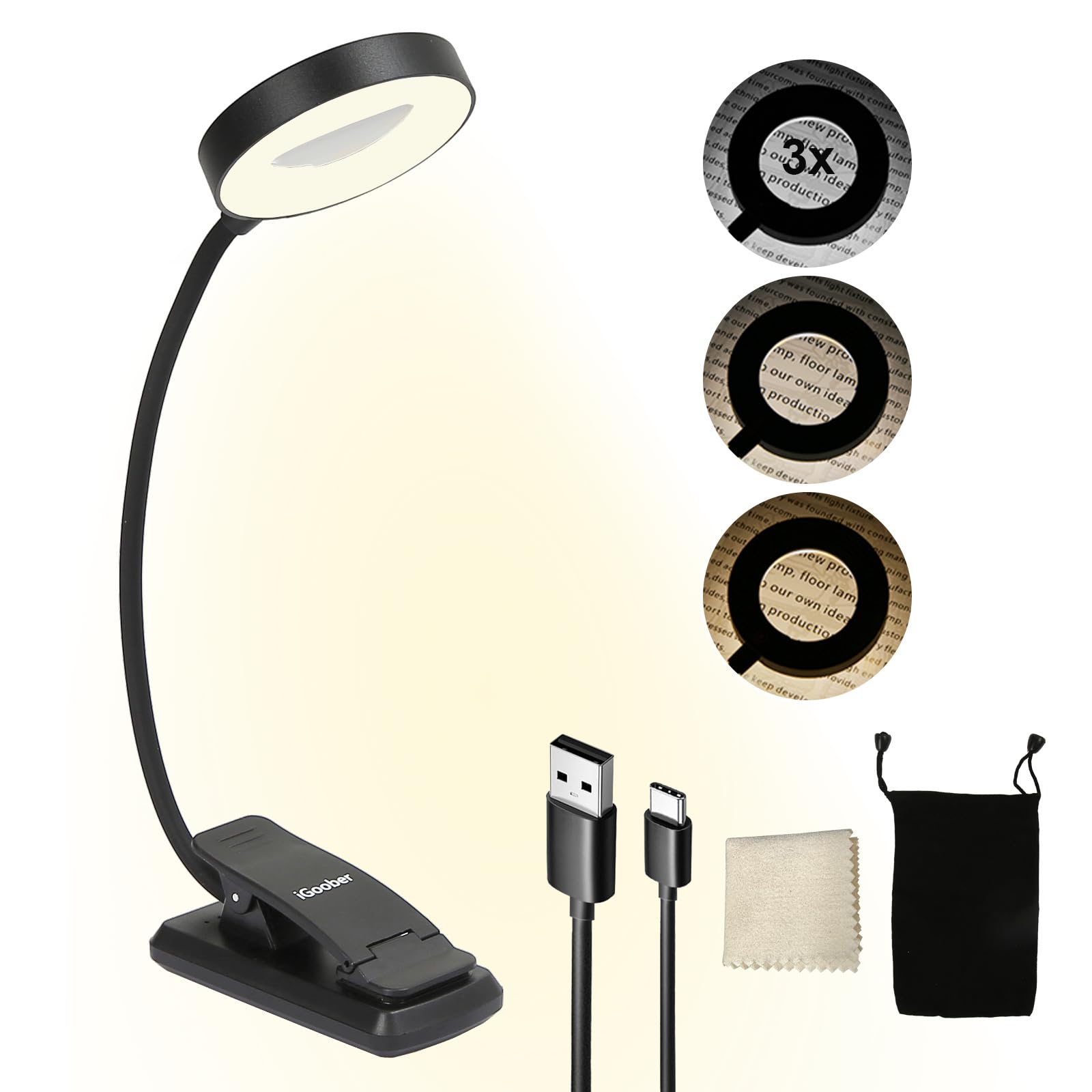 Lupa portátil con luz, mini lámpara de aumento recargable 3X, 3 colores x 3 brillo, lupa de bolsillo con clip de luz LED, para lee
