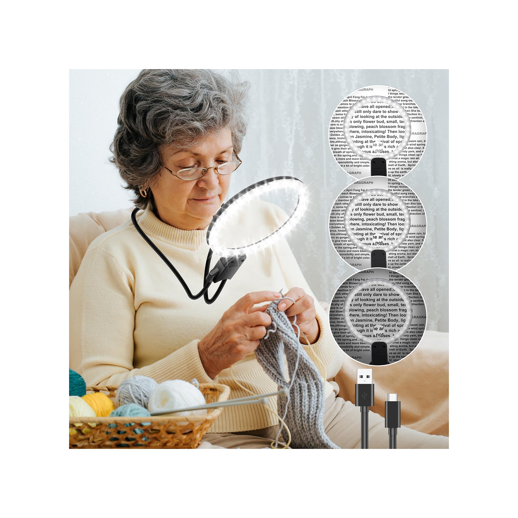 Lupa de manos libres 5 x 15X con luz para leer, lupa alrededor del cuello para trabajo cercano, lupa grande para manualidades, cos