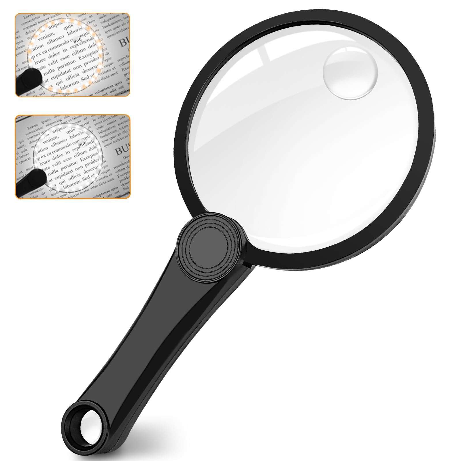 Lupa recargable con luz, lupa de página grande 5X 10X 45X con 20 luces LED, lupa plegable regulable de mano para leer libro letra