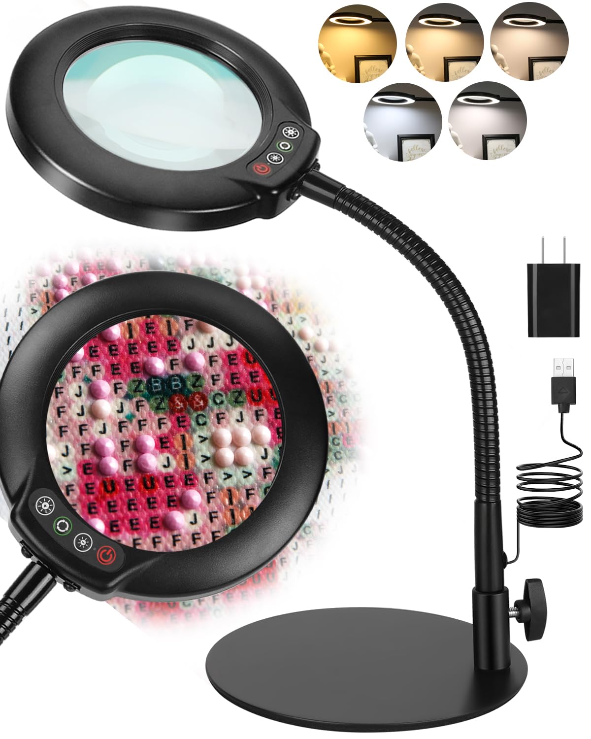 10 lupas con luz, 5 modos de color, regulable, flexible, cuello de cisne, lámpara de escritorio LED manos libres, lupa iluminada p