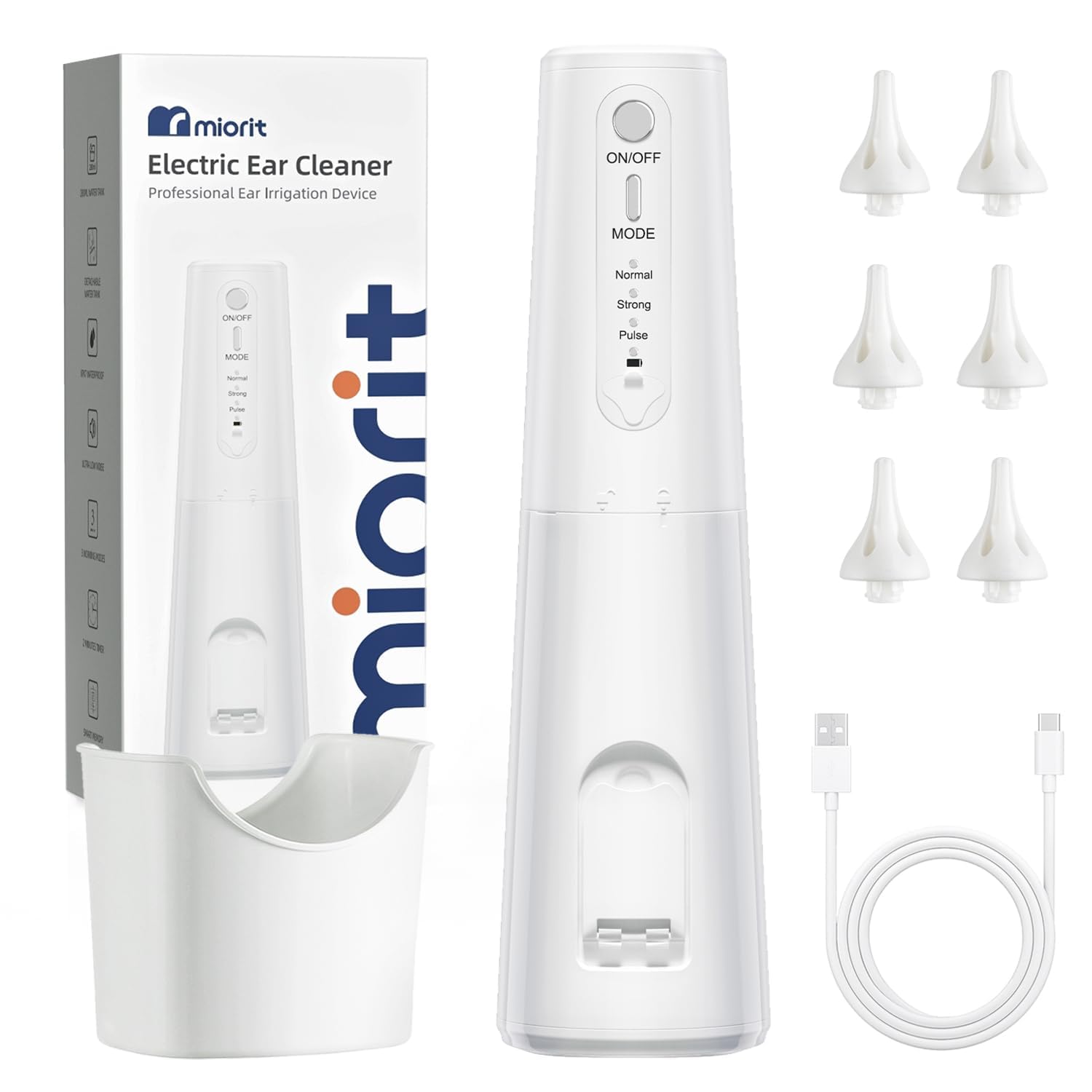 Eliminación eléctrica de cera de oído, kit de limpieza de oídos con 6 puntas y 3 modos de presión, sistema de lavado de riego de o