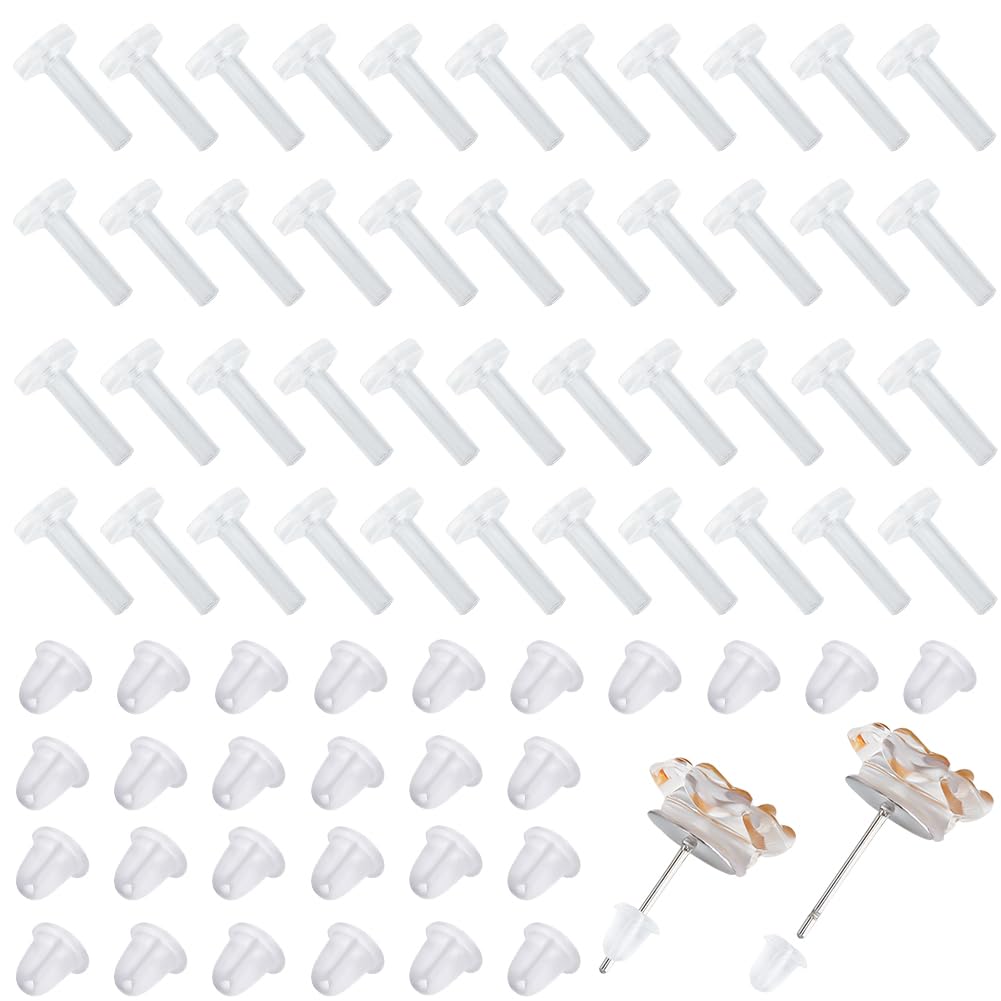 50 fundas para aretes para orejas en blanco, protectores de aretes antiperforados, retenedores de silicona para aretes de gancho,