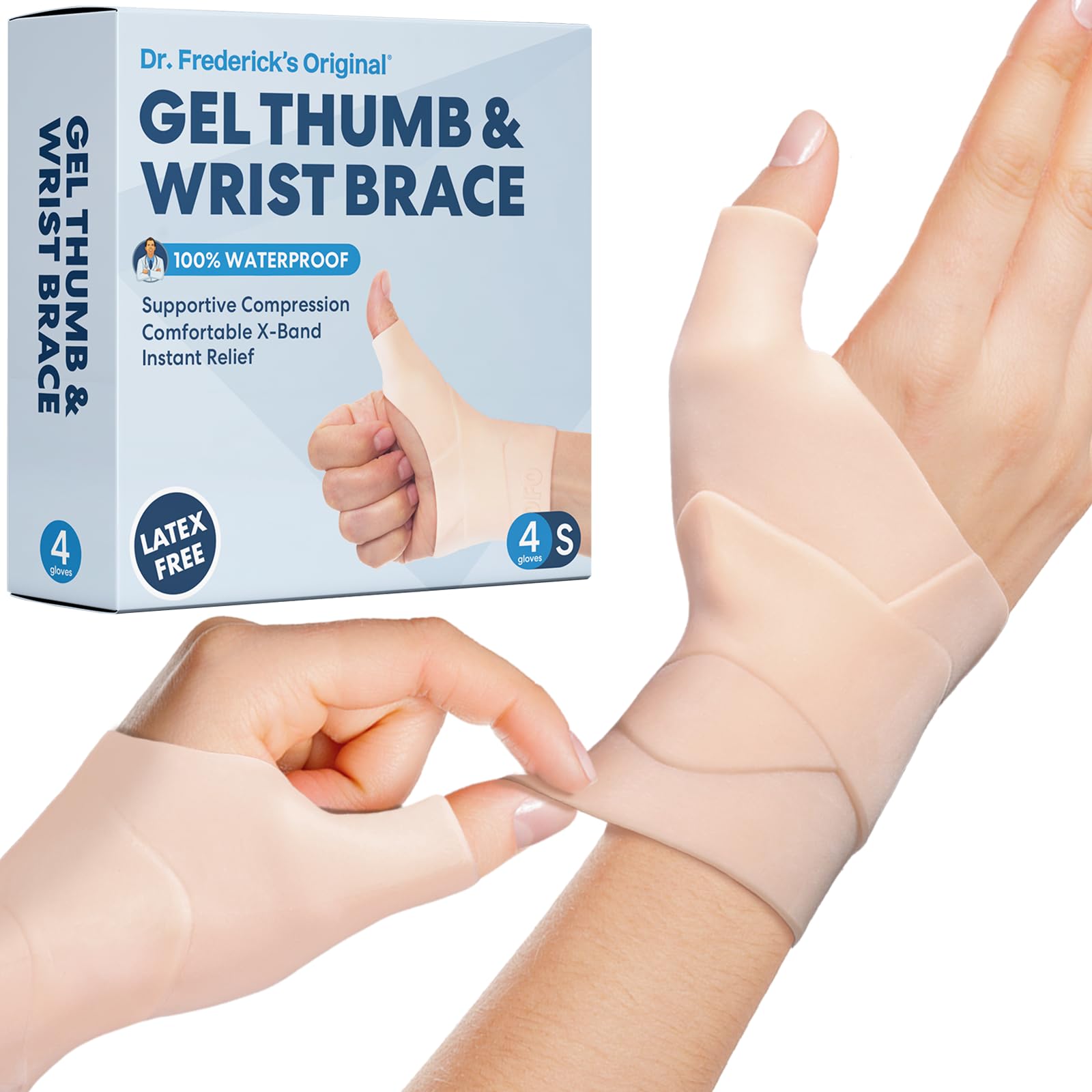 Dr. Frederick’s Original Muñequera y pulgar – 4 piezas – Férula Spica para artritis pulgar – Pulgar esquiador – Tenosinovitis de D