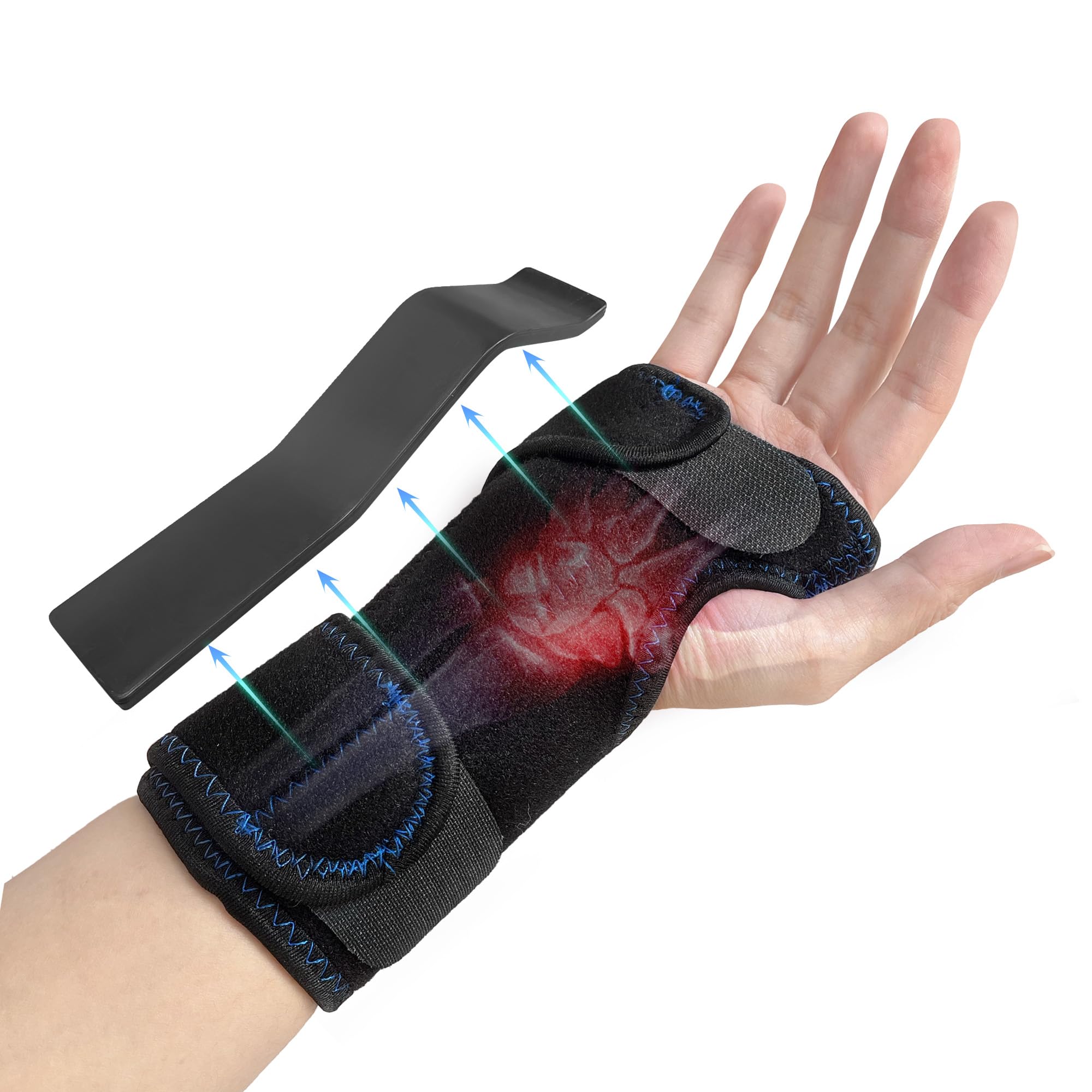 FEATOL Muñequera para túnel carpiano, soporte ajustable para la mano y el sueño, férula de metal extraíble, paquete de hielo y cal
