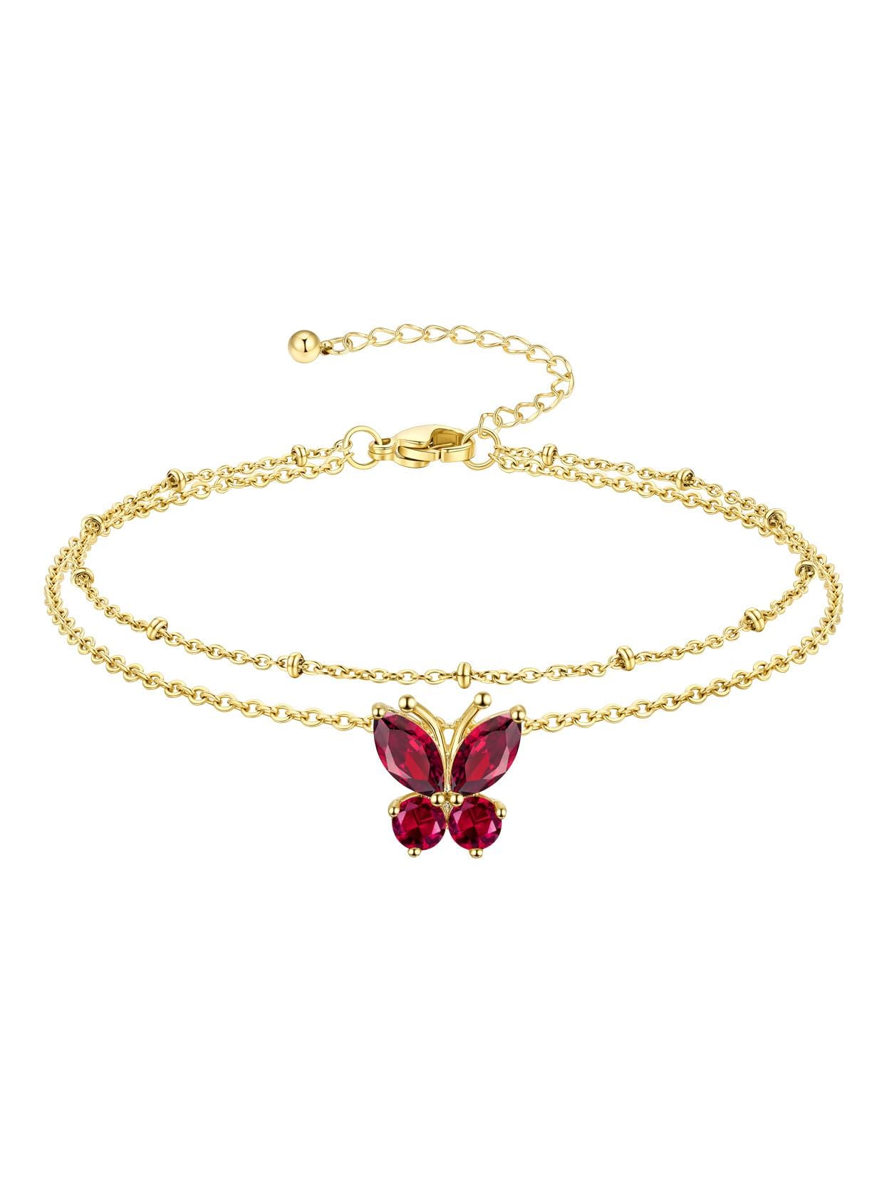 Richsteel Tobillera de doble capa con forma de corazón y mariposa para mujer, no se deslustra, impermeable, plateada/oro/negro, ac