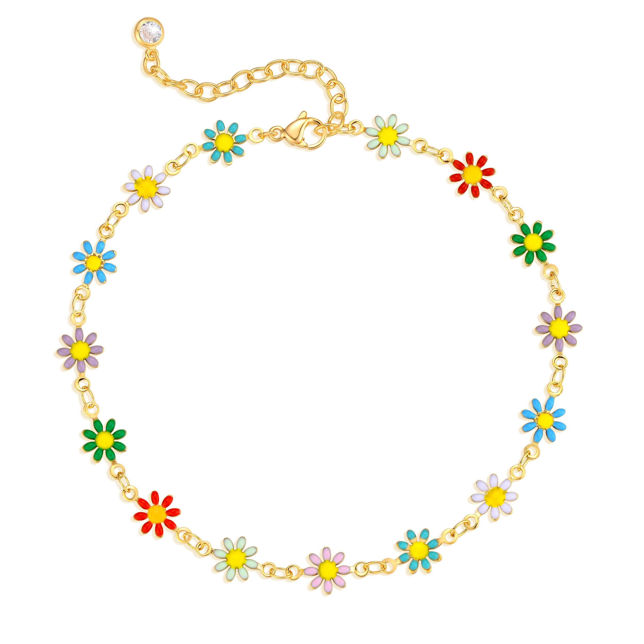Dremmy Studios Tobillera para mujer, chapada en oro de 14 quilates, cuentas delicadas, margaritas, corazón, cruz, ancla, pulsera d