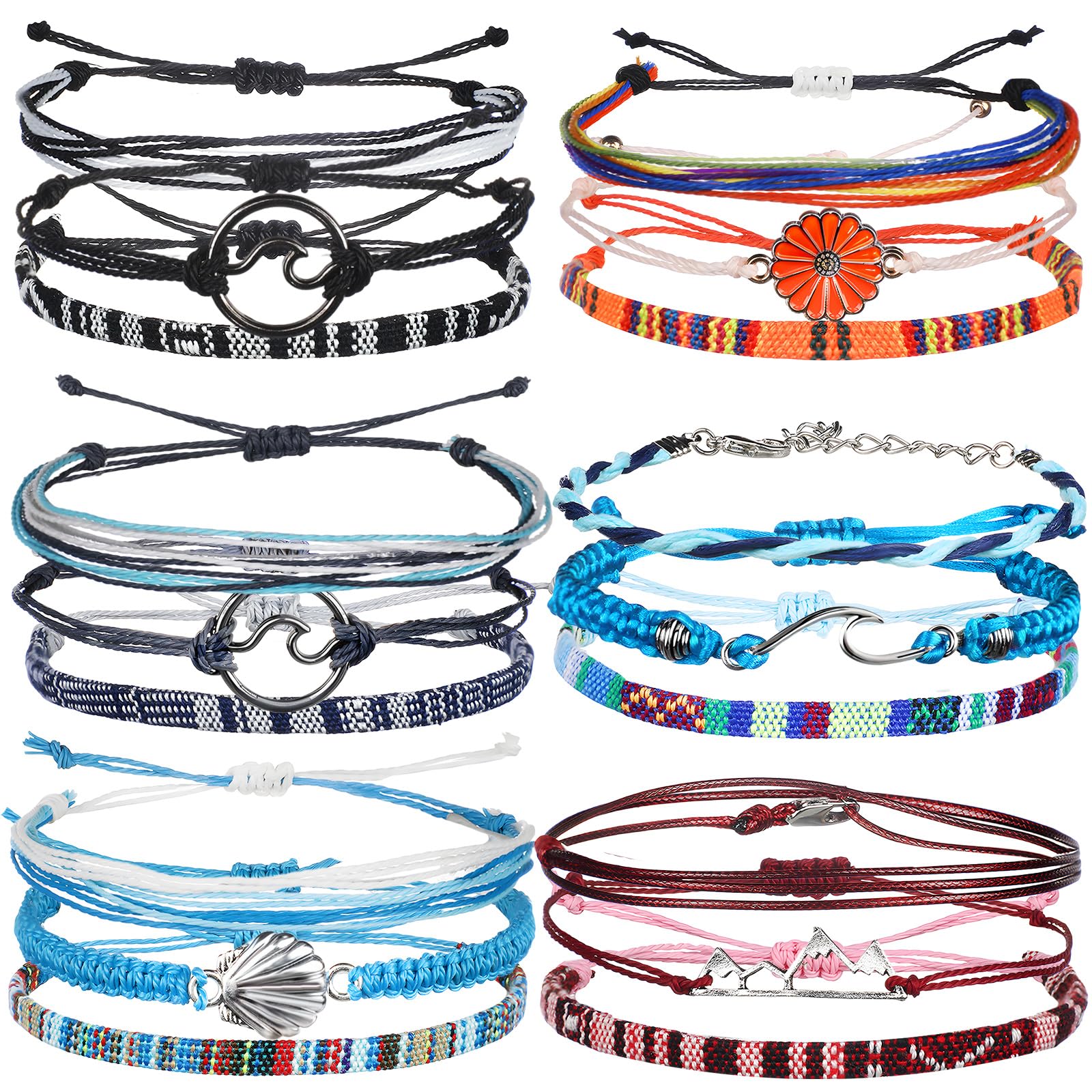 Yinkin Tobillera de estilo bohemio con cuentas ajustables, hecha a mano, trenzada, colorida cuerda de playa de verano, joyería boh