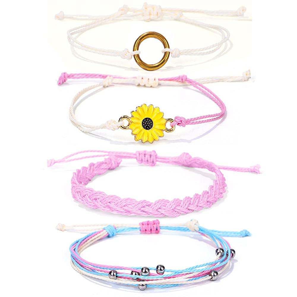Caiyao 4 pulseras tobilleras de ondas de surfista de verano, de hebra ajustable, trenzadas, impermeables, hechas a mano, con giras