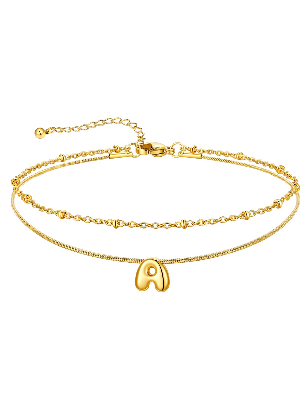 U7 14K Gold Initial Ankle Bracelets for Women Waterproof,Layered Gold Letter Anklets No Tainish,Summer Beach Foot Jewelry