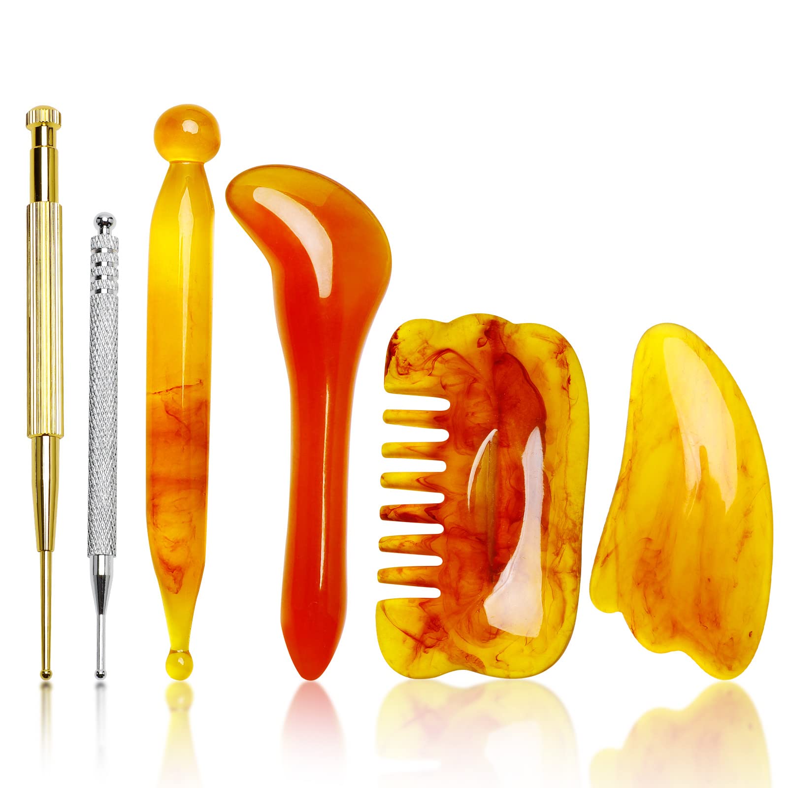 Gua Sha – Herramienta de masaje, 6 unidades, palo de estiramiento facial, bolígrafo de acupuntura manual, tabla de raspar de masaj