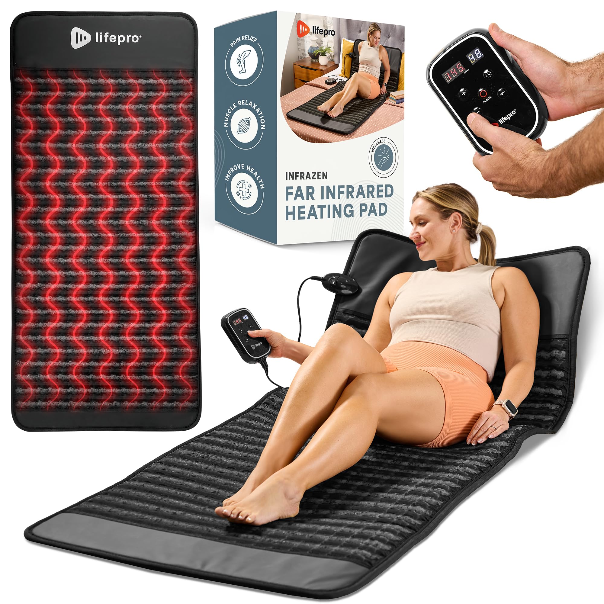 Lifepro Alfombrilla térmica plegable de infrarrojo lejano de 74 pulgadas de longitud completa con almohadillas térmicas de infrarr