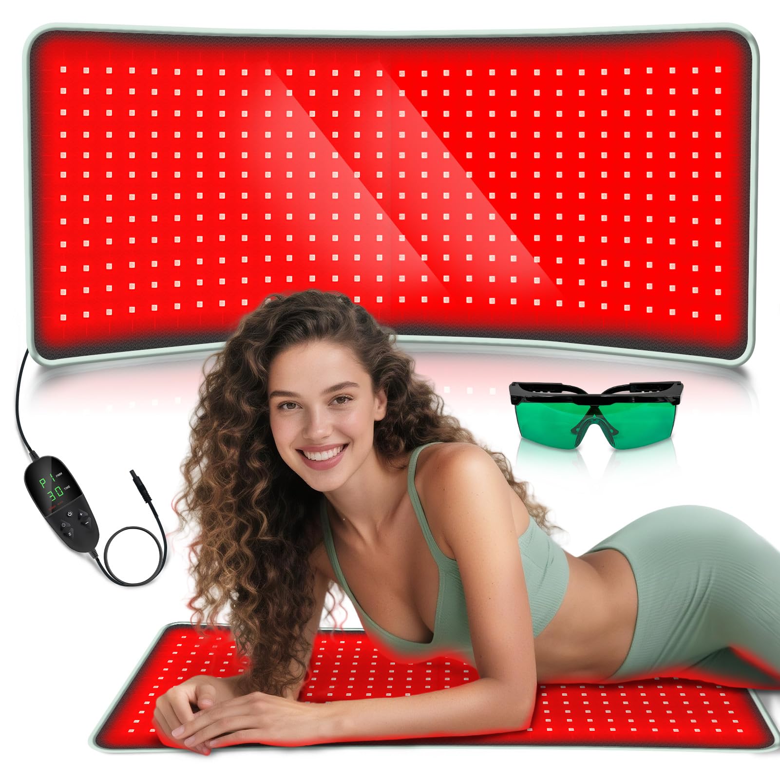 Almohadilla de terapia de luz roja para cuerpo, portátil, 31 x 12 pulgadas, tapete de luz roja de cuerpo completo con correa ajust