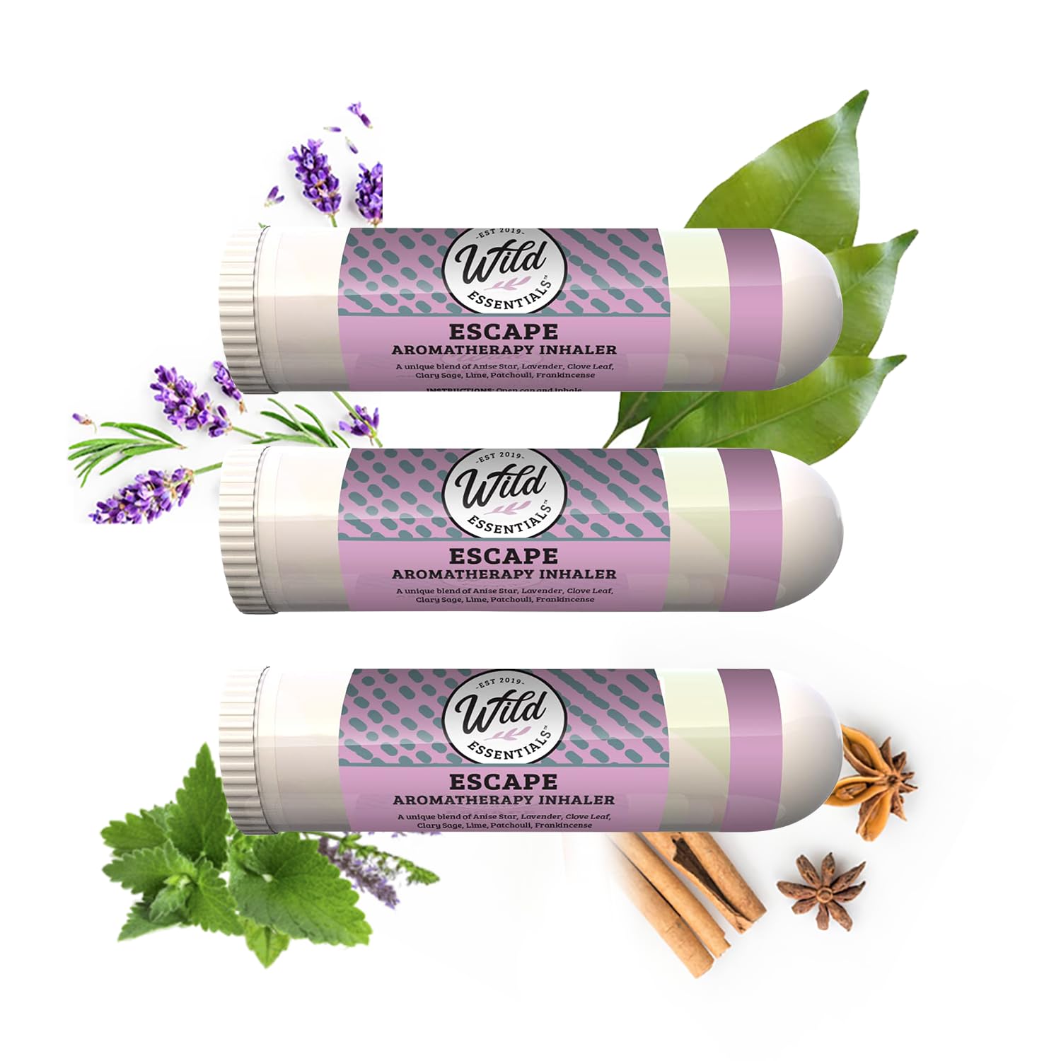 Wild Essentials – Paquete de 3 inhaladores nasales de aromaterapia hechos con aceites esenciales de alta calidad, sueño de día, re