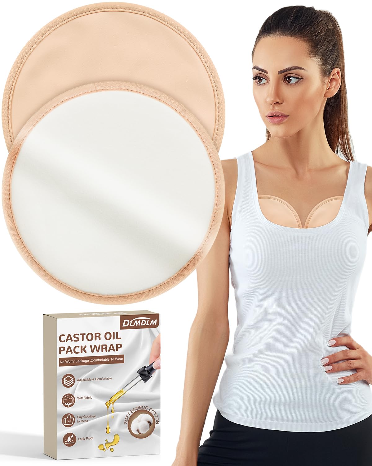 DLMDML – Paquete de 2 unidades de aceite de ricino para el pecho, almohadillas reutilizables de aceite de ricino orgánico, almohad