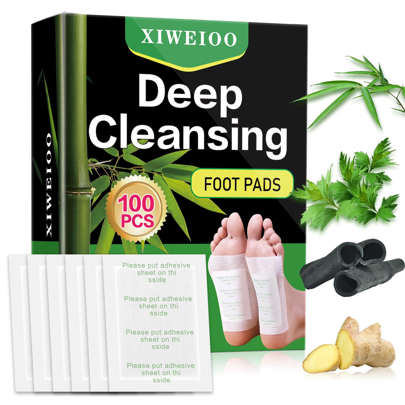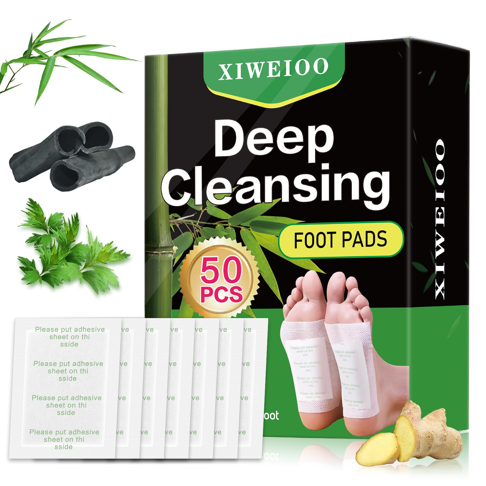 Paquete de 50 almohadillas naturales para pies, jengibre y ajenjo, vinagre de bambú, parche para el cuidado de los pies, limpieza