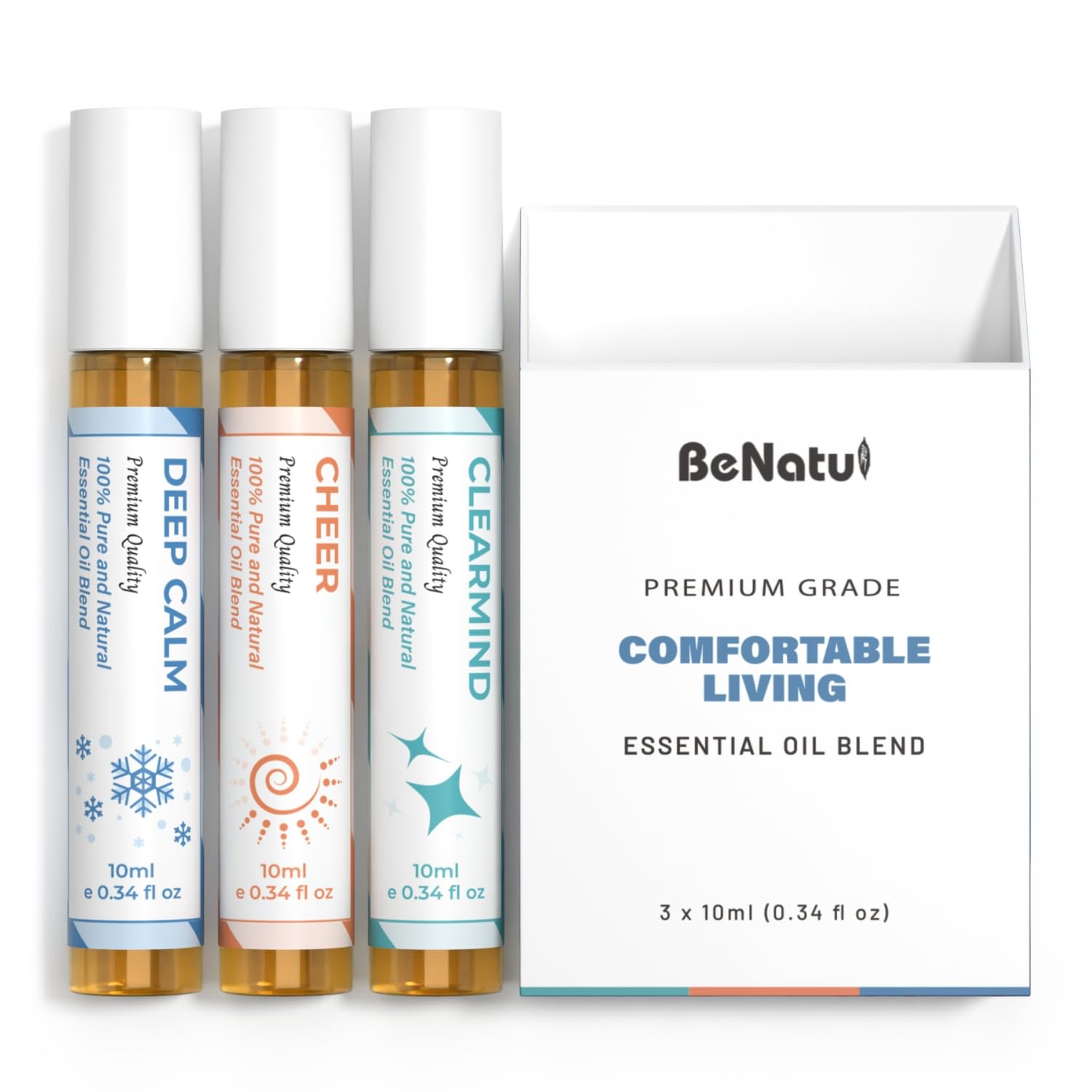 Juego de aceites esenciales (Deep Calm, Cheer, ClearMind), mezclas de aromaterapia enrollables para masajes, cuidado corporal y us