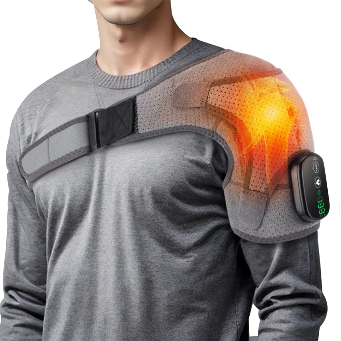 Almohadilla térmica de hombro inalámbrica para hombres y mujeres, envoltura de hombro calentada con 3 vibraciones, masajeador de h