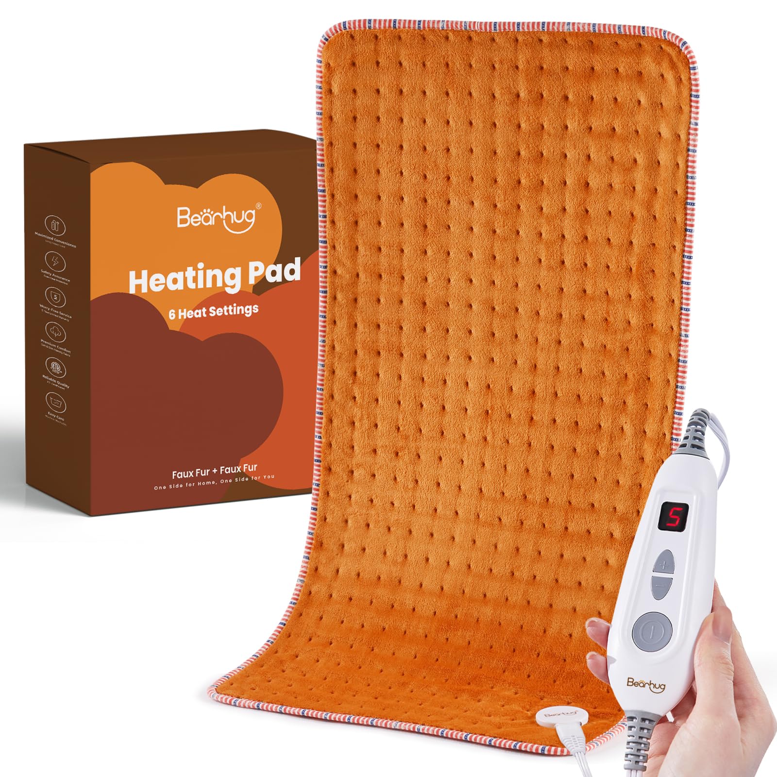 Bearhug Almohadilla térmica grande para espalda/calambres menstruales/cuello/hombros/rodillas, calor calmante para relajación y al