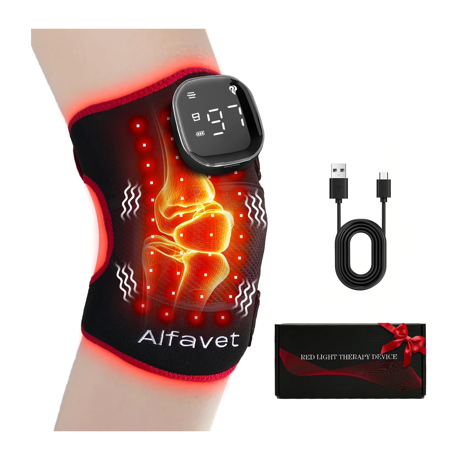 Rodillera de terapia de luz roja inalámbrica recargable con modos de pulso y calefacción, luz infrarroja cercana de 660 nm y 850 n