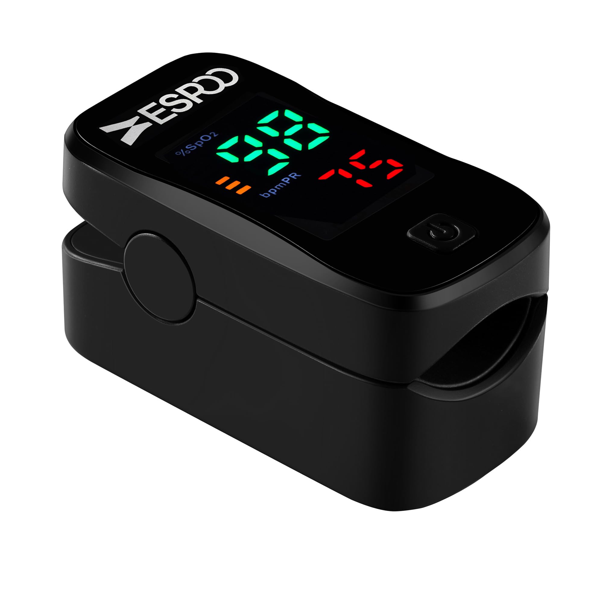 ESPOO Oxímetro de pulso, monitor de oxígeno con 2 pilas AAA y cordón (negro)