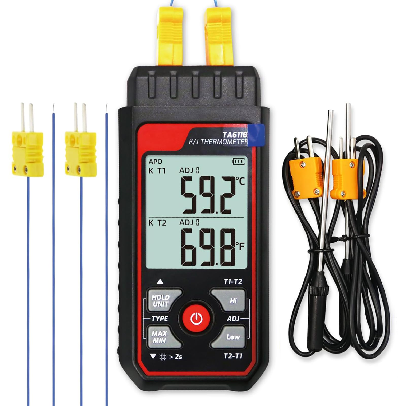 Thermocouple Thermometer Dual-Channel Digital K/J Type Thermometer -328~2501℉ HVAC Temperature Meter with 4 Type k Thermocouple Pr