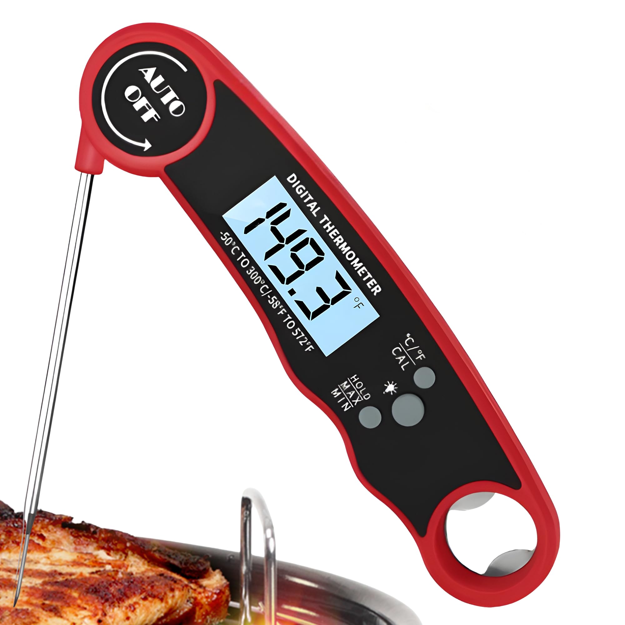 Termómetro de carne – Termómetro digital de lectura instantánea para cocinar a la parrilla y barbacoa, IP67 impermeable, retroilum