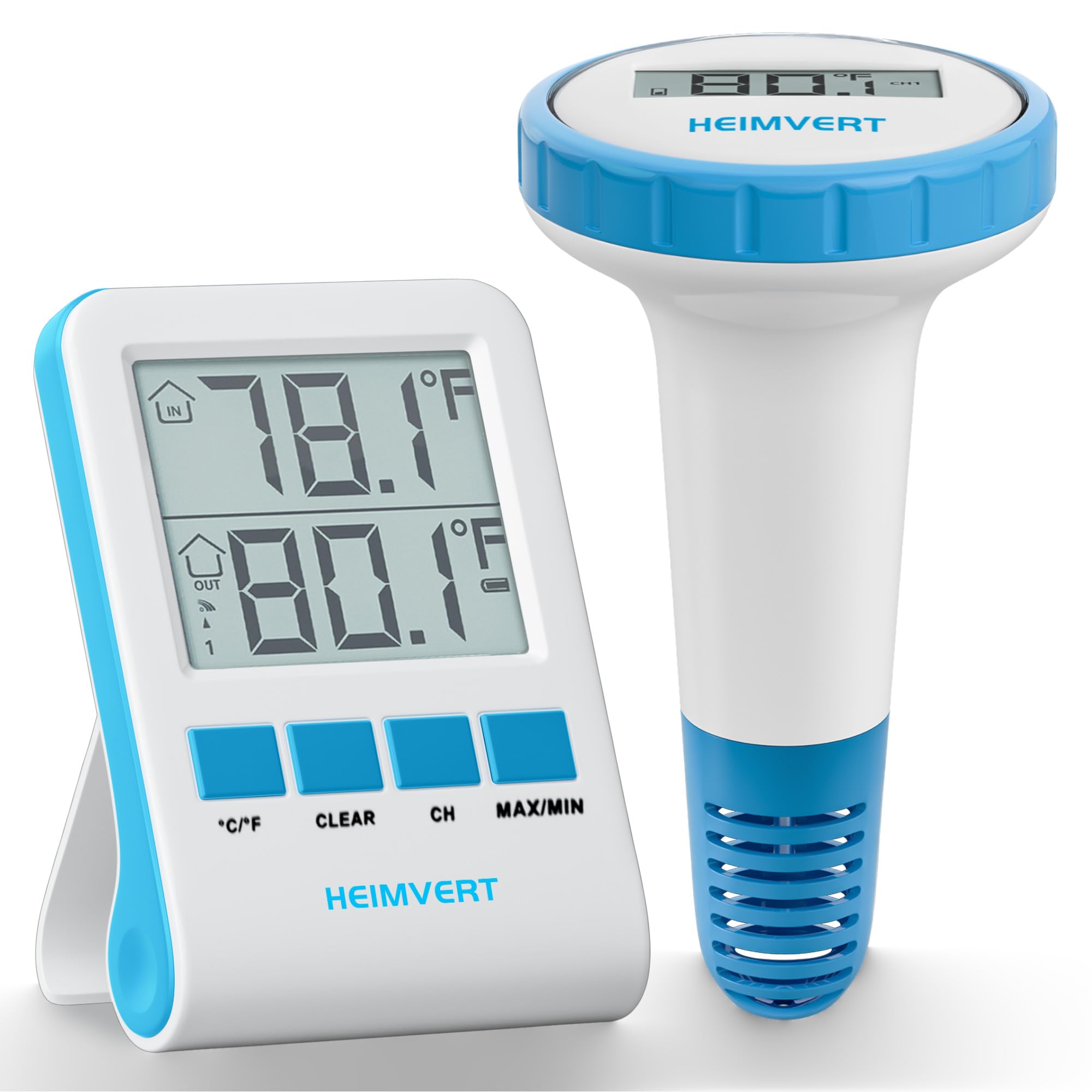 Termómetro digital inalámbrico para piscina, flotante, pantalla fácil de leer, IPX8 resistente al agua, sensor para interiores y e