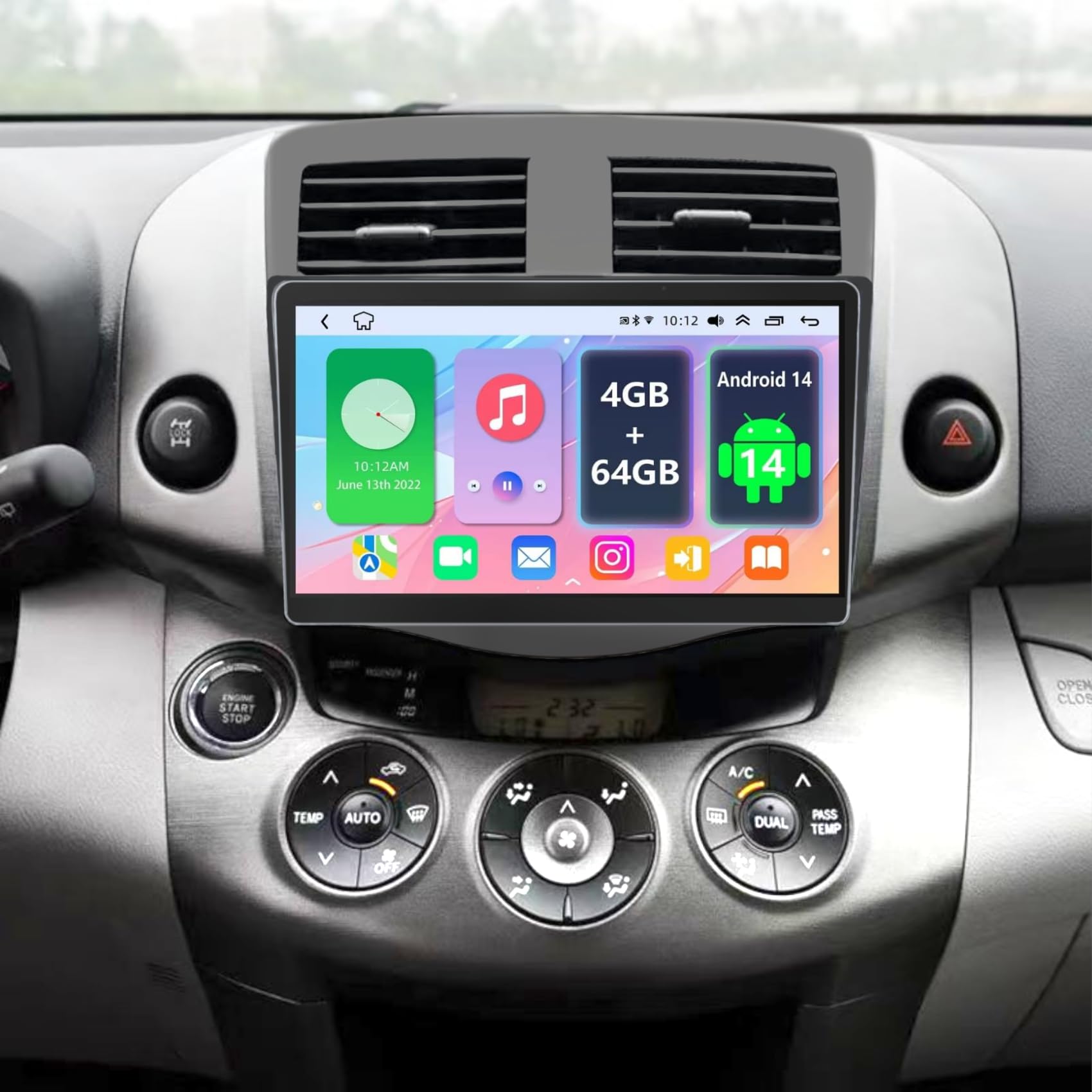 Radio de coche Android 14 de 4+64 GB para Toyota RAV4 2007 2008 2009 2010 2011 2012, 9 pulgadas IPS pantalla táctil RAV4 estéreo c