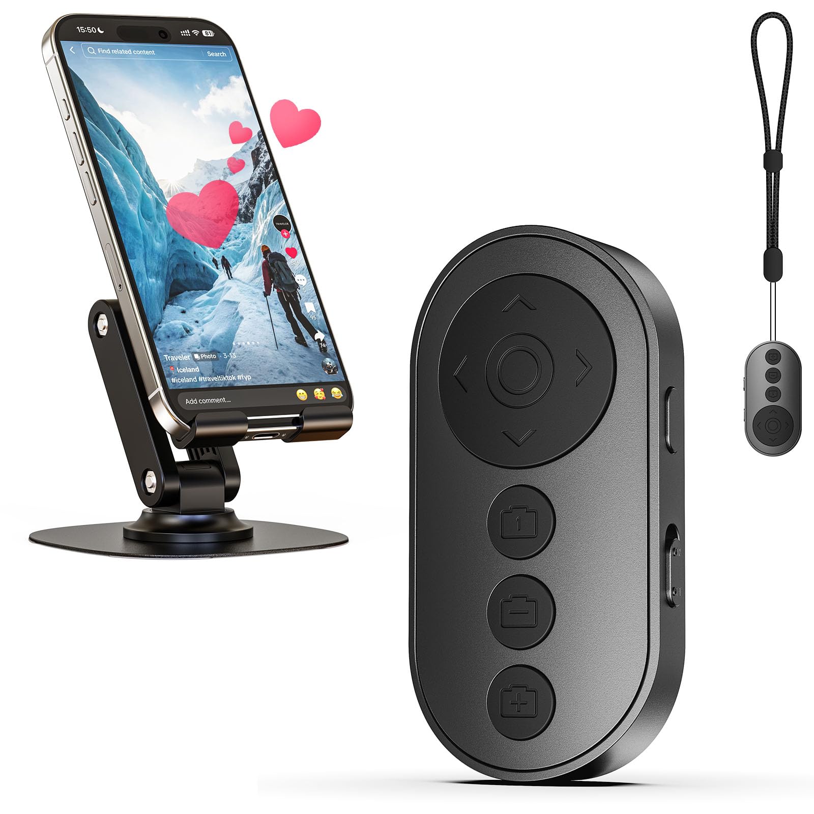 Anillo de cámara de teléfono con control remoto con zoom in/out, obturador recargable con interruptor de cámara frontal/trasera pa