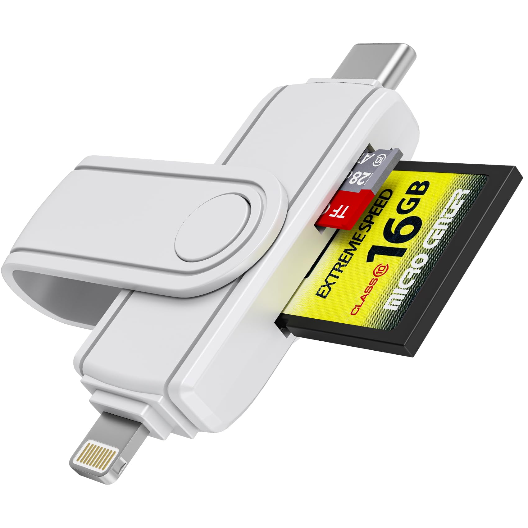 Lector de tarjetas SD/microSD para iPhone, adaptador de lector de tarjetas de memoria de doble conector Lightning y USB-C, visor d