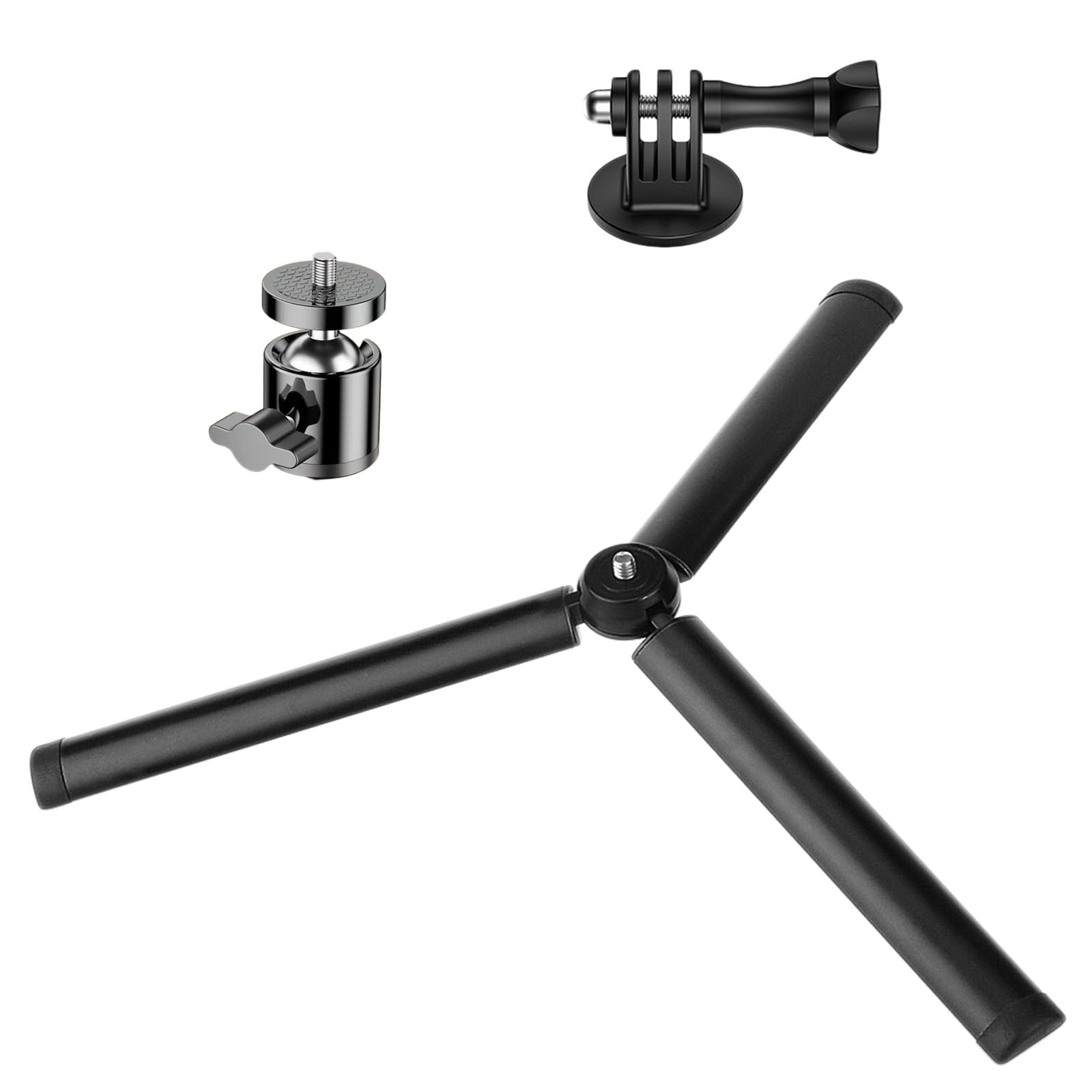 Mini trípode de metal con soporte de cabeza esférica de 360°, con adaptador para GoPro, agarre compacto de mesa para selfie, sopor