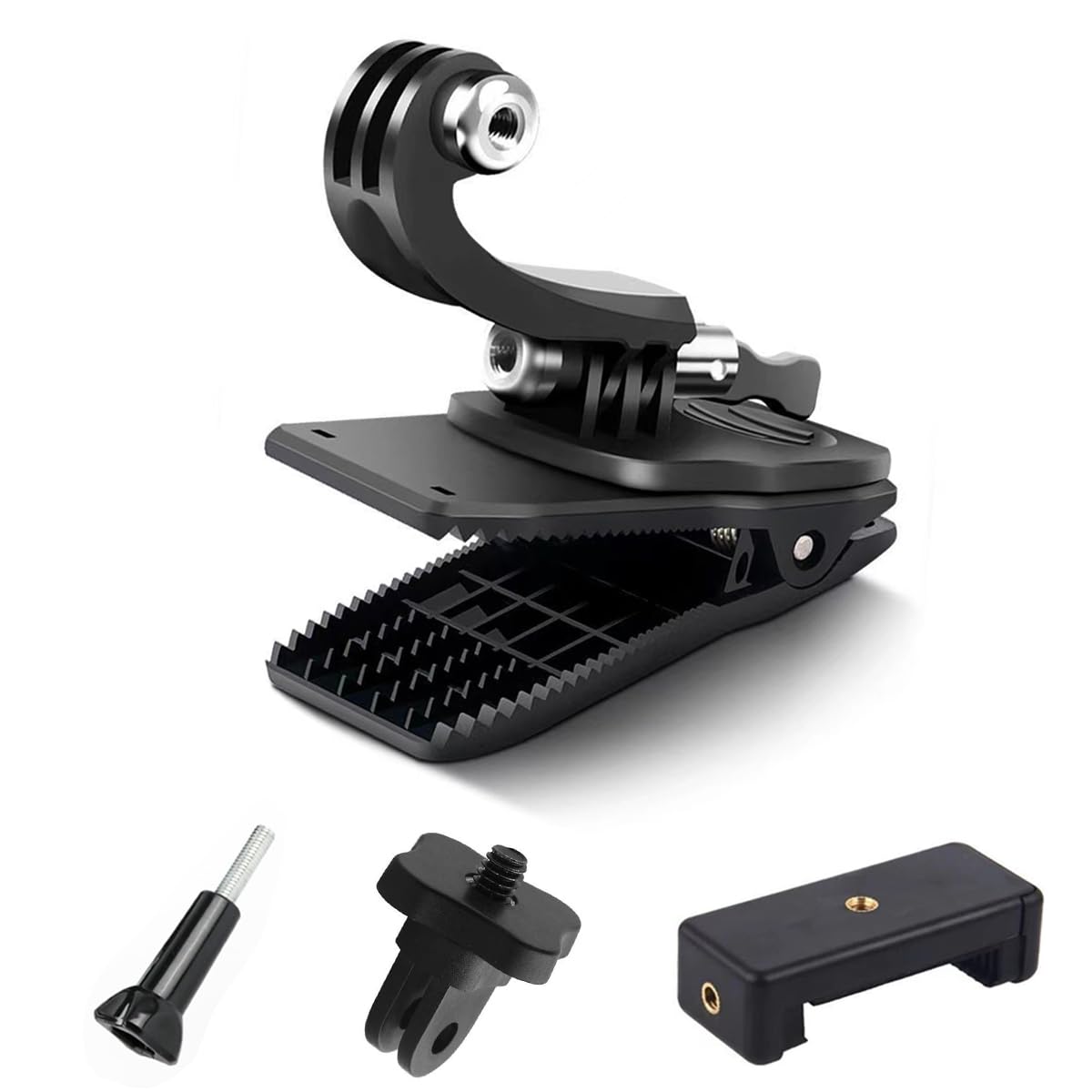 Versátil clip giratorio de 360 grados para cámara de acción y teléfono, correa de hombro para mochila, sombrero de ala rígida, abr