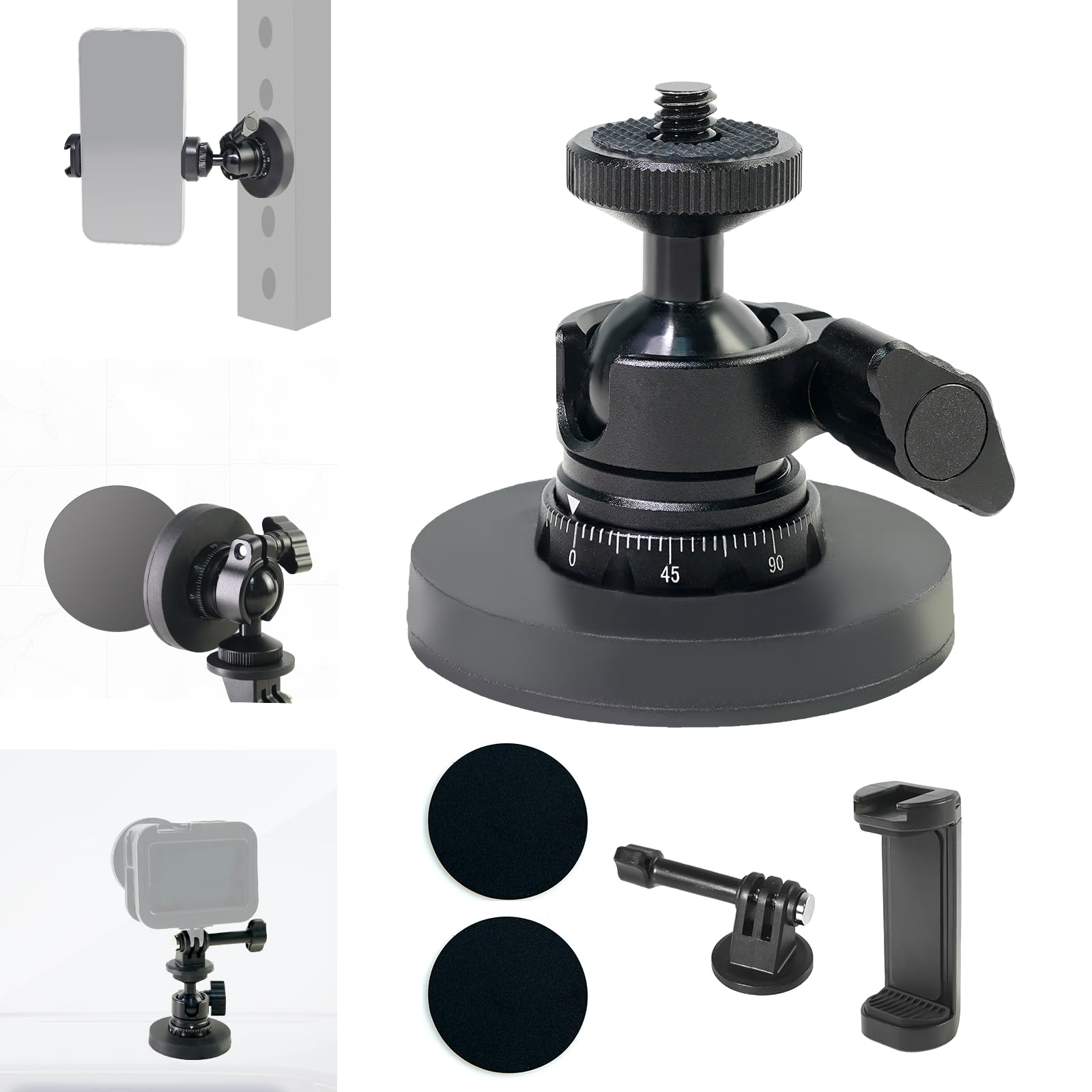 Soporte magnético para cámara con cabezal de bola de rotación de 360°, tornillo de 1/4 pulgadas y adaptador de cámara de acción pa