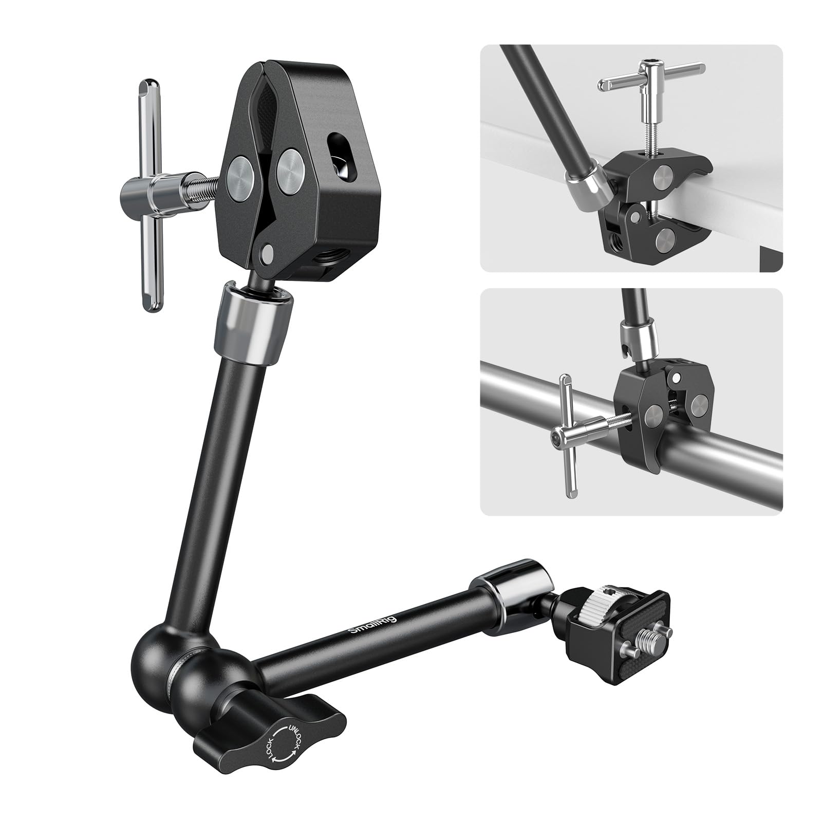 SMALLRIG Brazo mágico de 11 pulgadas con abrazadera en forma de cangrejo, brazo con tornillo de 1/4″-20 y pasadores retráctiles, p