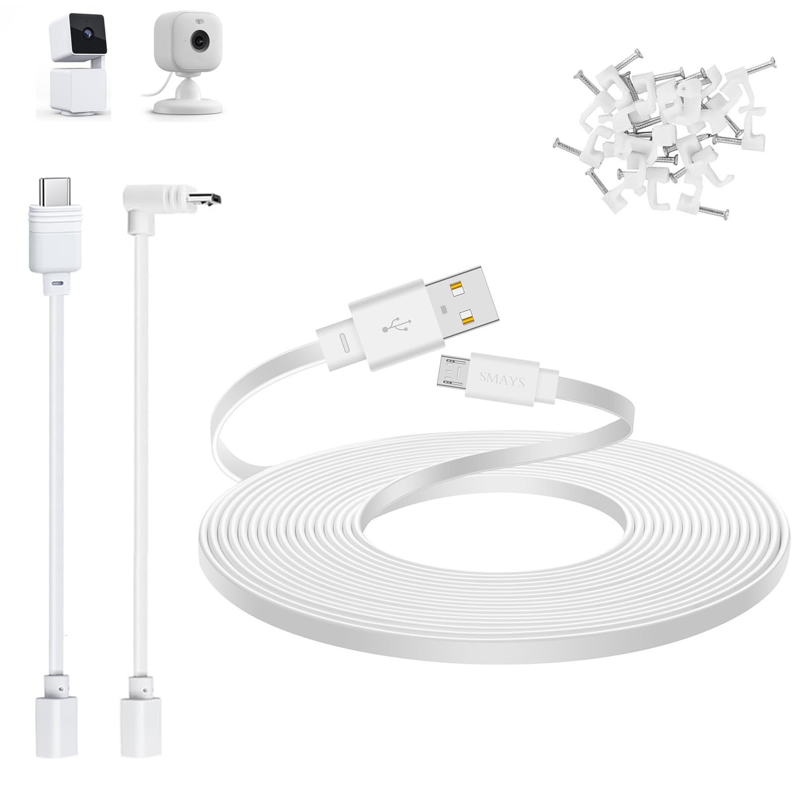 Smays Cable de extensión de 50 pies compatible con WYZE Cam Pan v3, WYZE Cam v4, Blink Mini 2, cable de alimentación micro USB pla