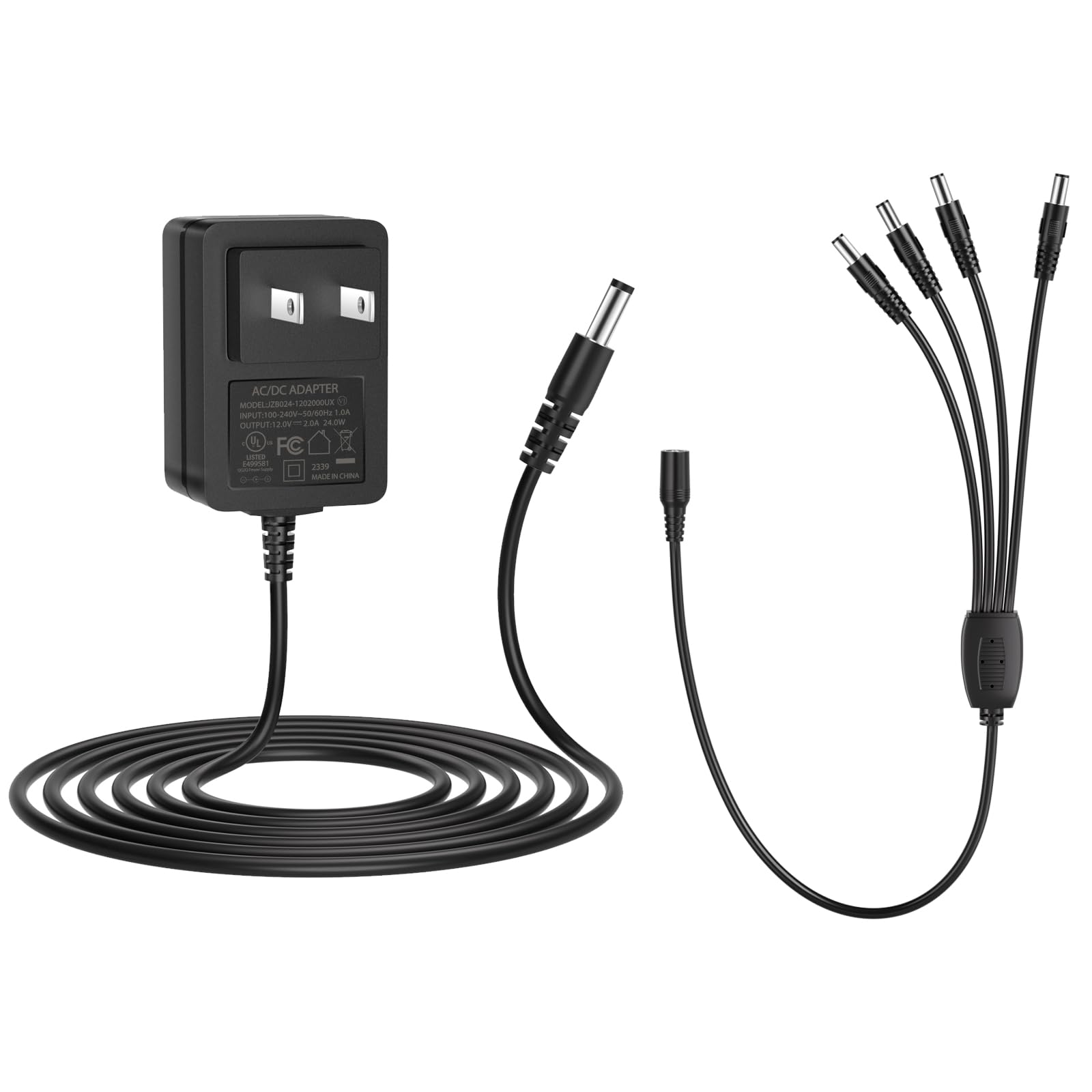 Adaptador de corriente, cable divisor de corriente CA 100-240V a CC 12V 2A (2000 mA) y 4 vías para cámara de seguridad CCTV/DVR/NV