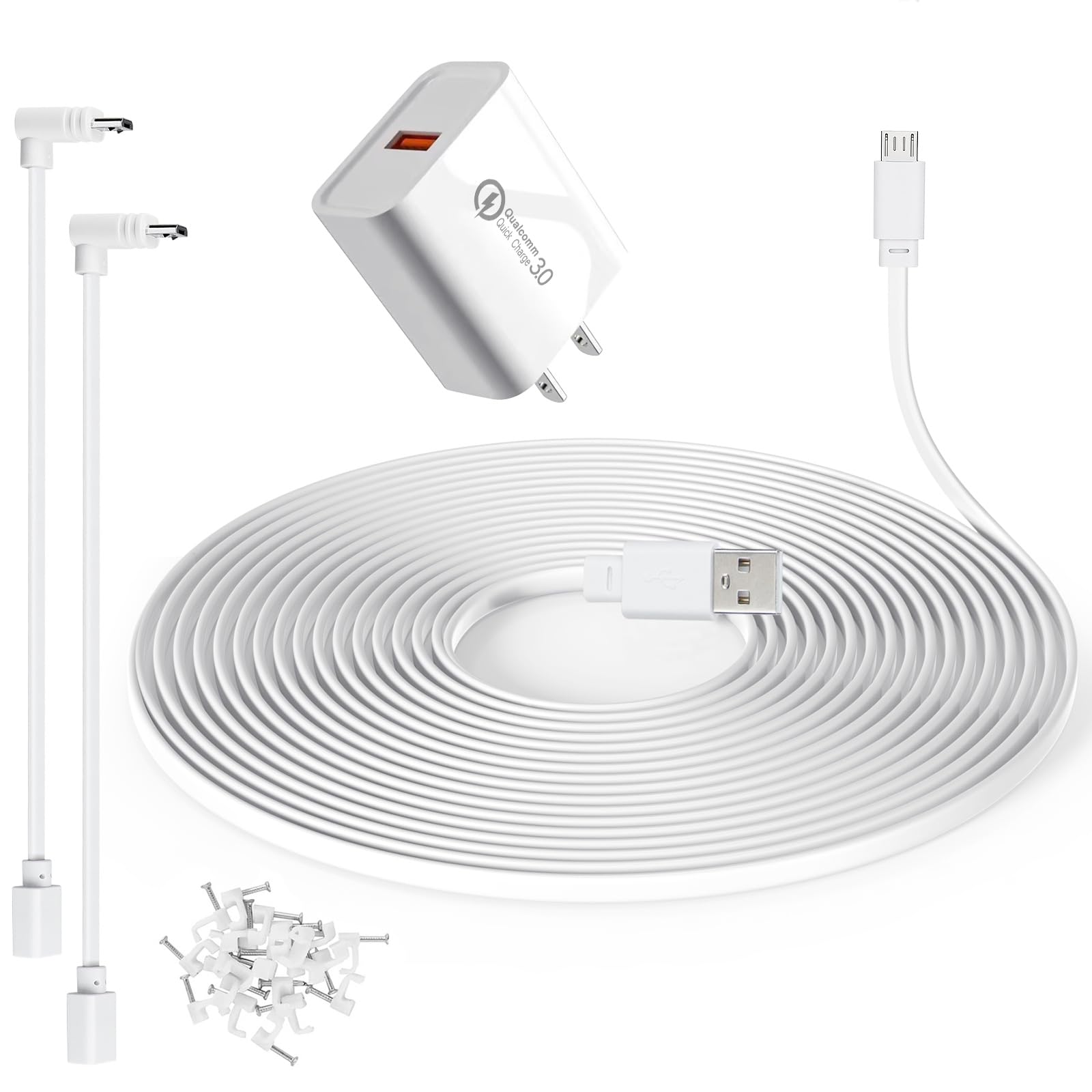 Smays Cable de extensión micro USB de 26 pies de repuesto para cámaras de seguridad (Kasa, Blink Mini, Wyze Cam, Yi, Zmodo) y Ocul