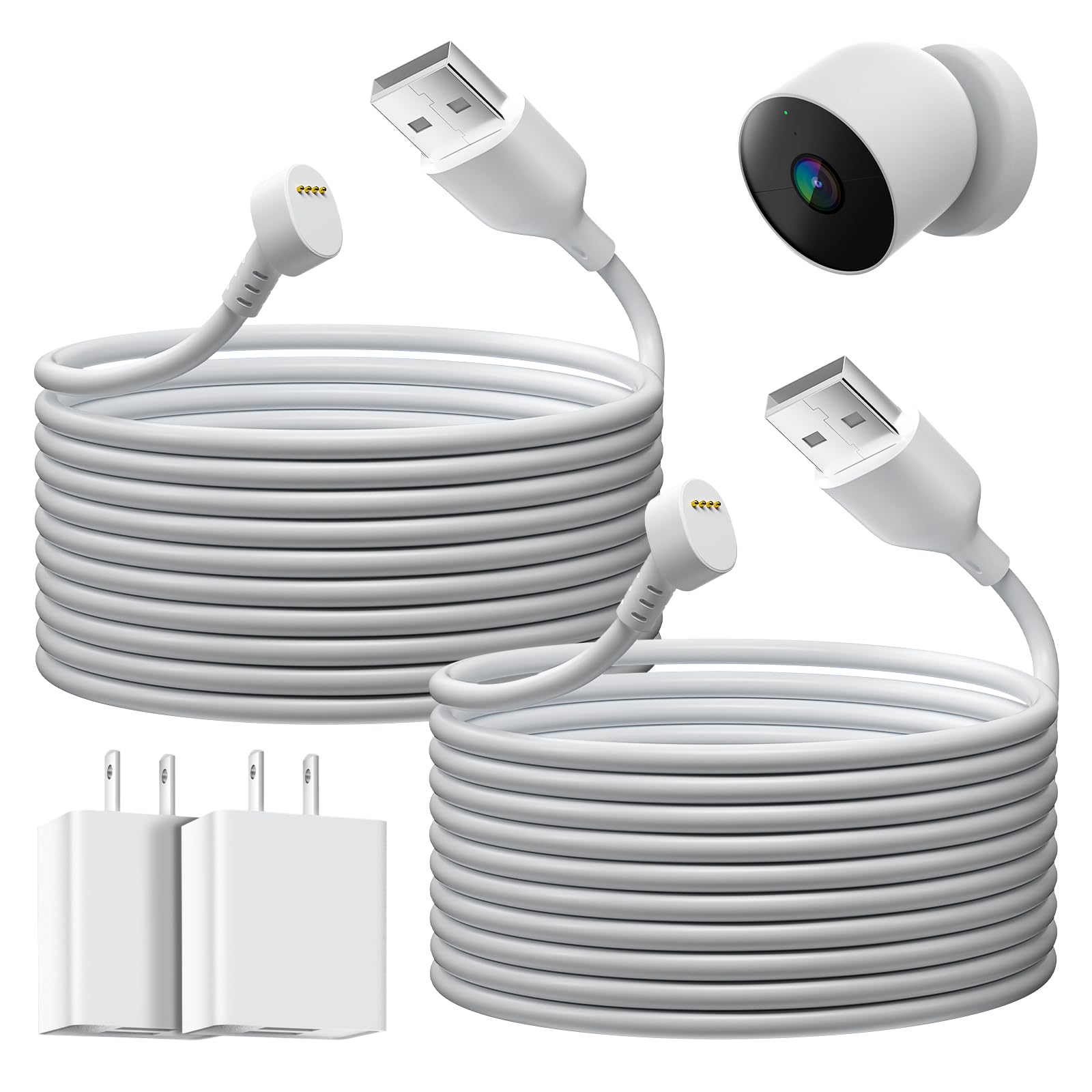 Paquete de 2 cables de alimentación de 25 pies compatibles con Google Nest Cam para exteriores o interiores, batería (2.ª generaci