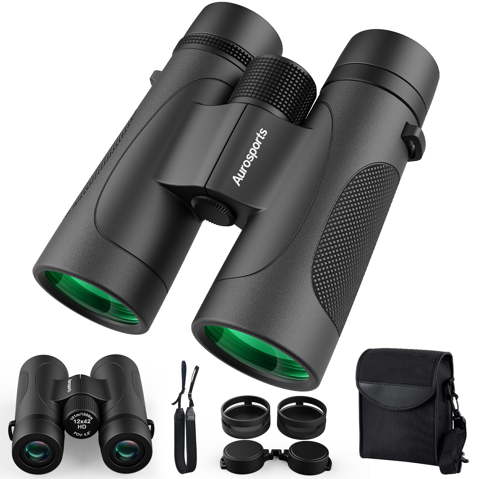 Prismáticos de 12 x 42 para observación de aves: Prismáticos impermeables a prueba de niebla a prueba de golpes para adultos de al