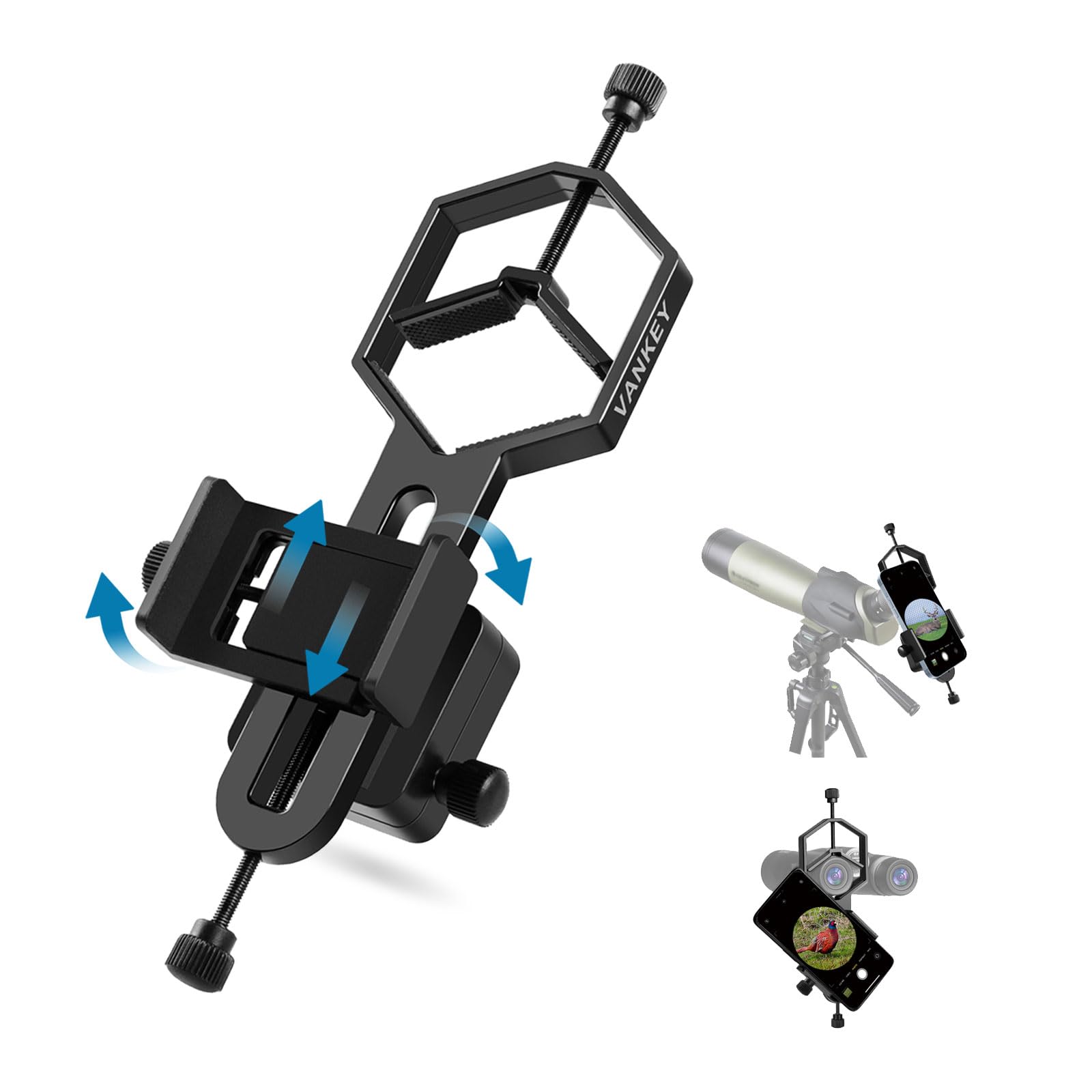 VANKEY Soporte de teléfono para telescopio grande, adaptador de teléfono de metal para telescopio, monocular, binocular, compatibl