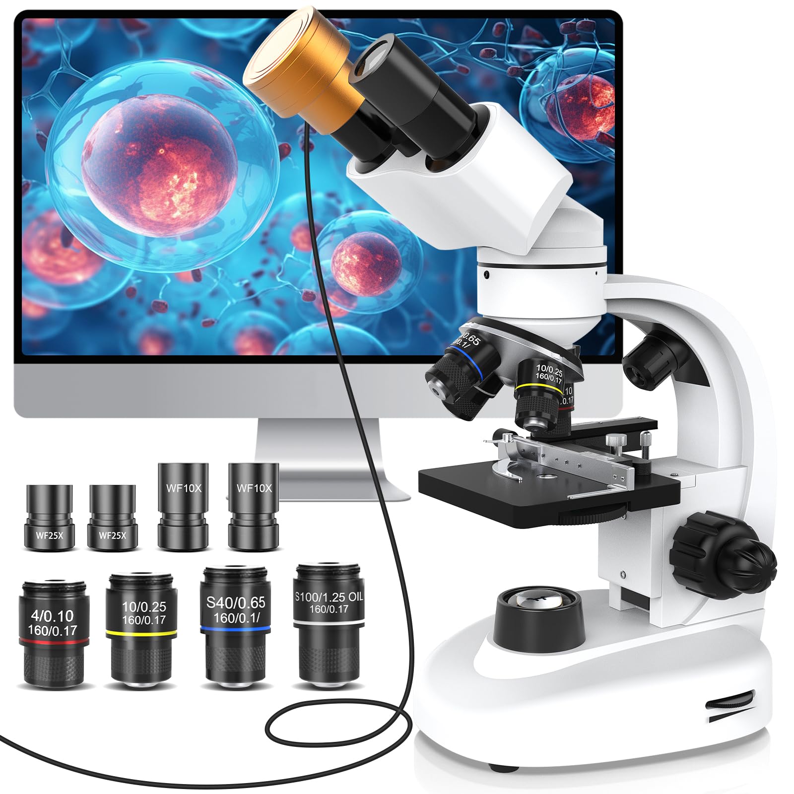 Microscopio compuesto binocular para adultos – Microscopio de laboratorio 40X-2500X con ocular digital para investigación – Escena