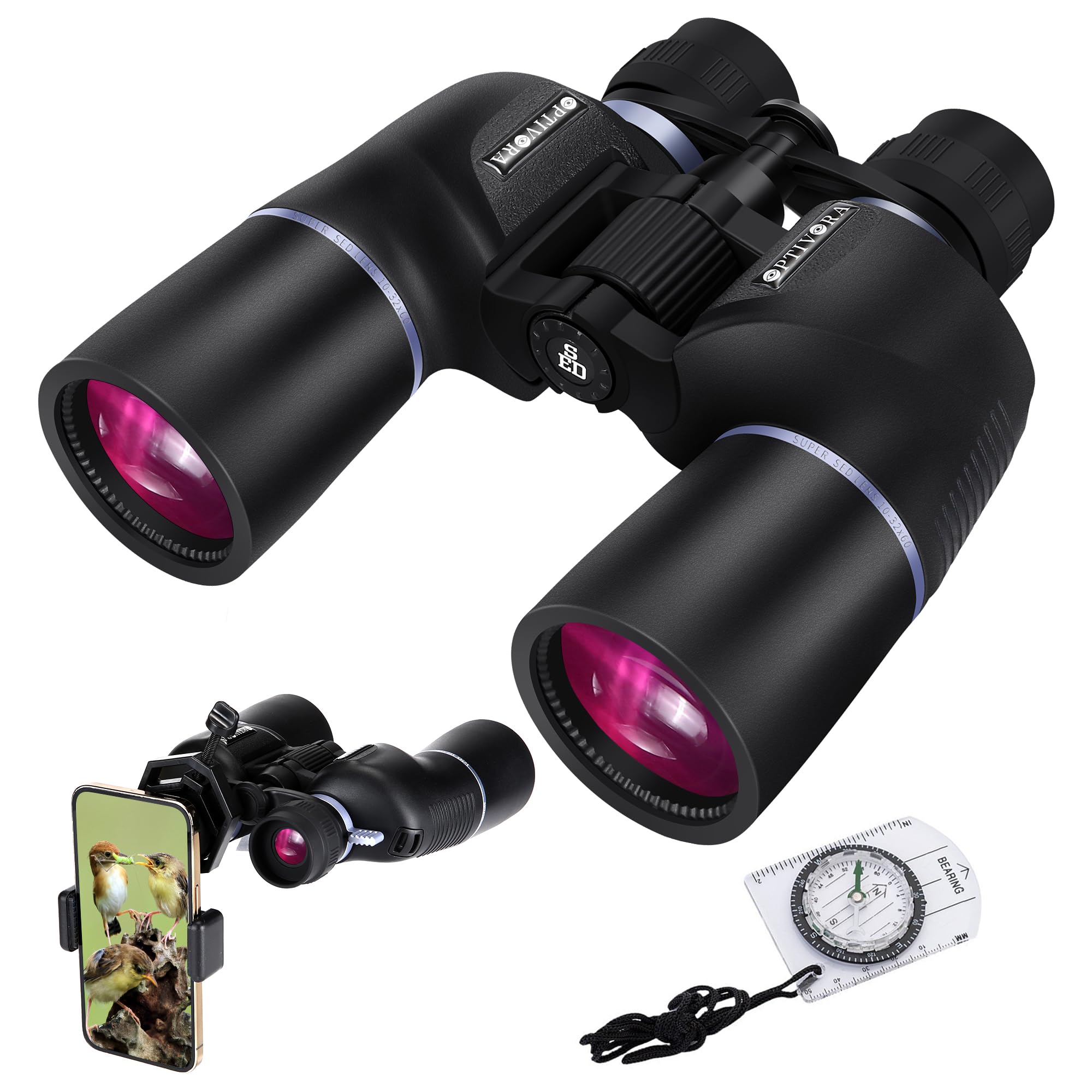 Prismáticos con zoom de 10-32 x 60 para adultos de alta potencia con lentes BAK4, SMC, estos prismáticos de largo alcance para adu