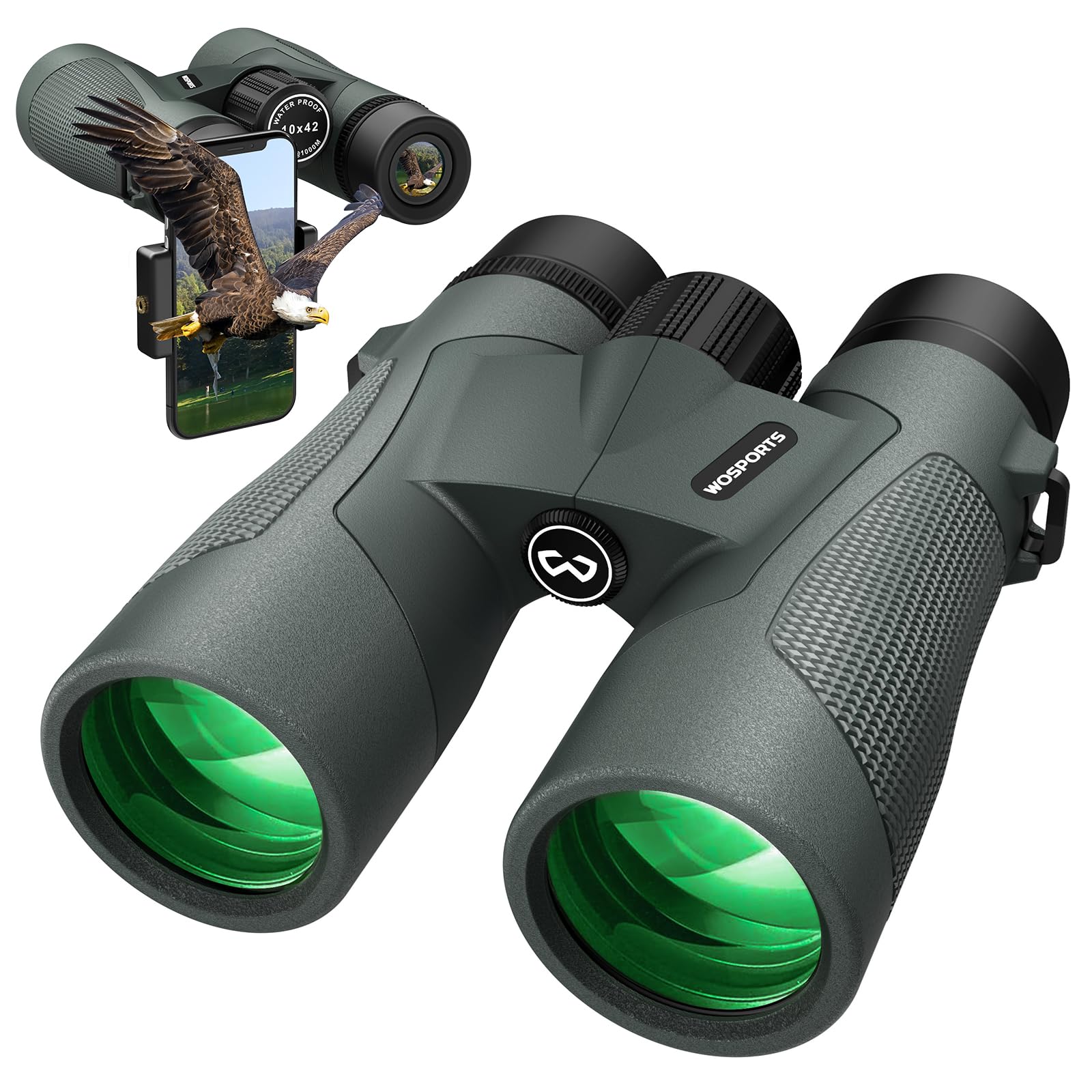 WOSPORTS Prismáticos de 10 x 42 para adultos, prismáticos impermeables IP67 para observación de aves, caza, senderismo, crucero po