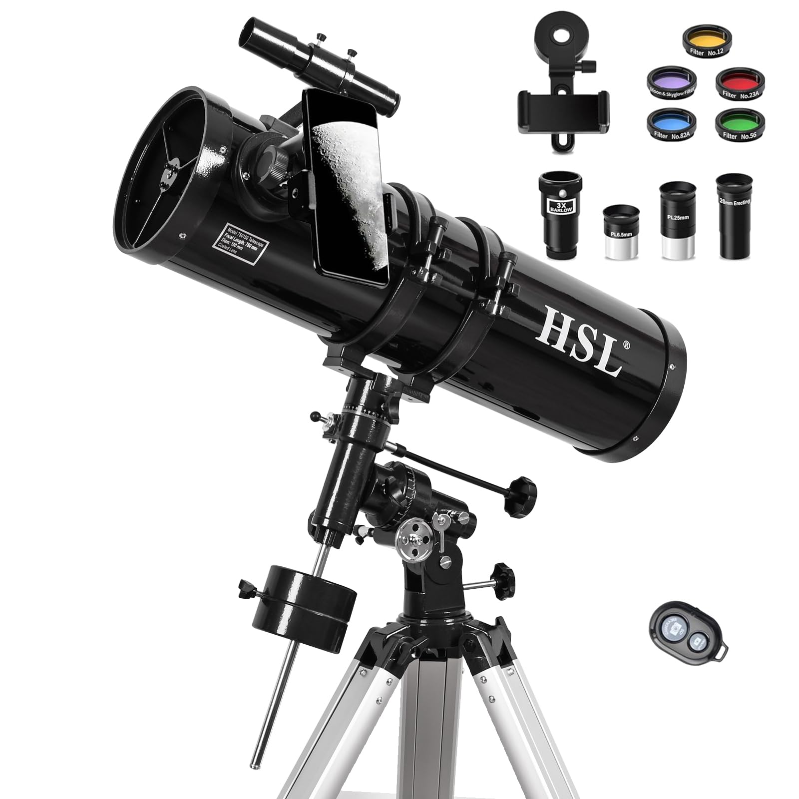 HSL 150EQ Telescopio reflector astronómico para adultos de alta potencia, telescopios profesionales de apertura de 5.906 in para a