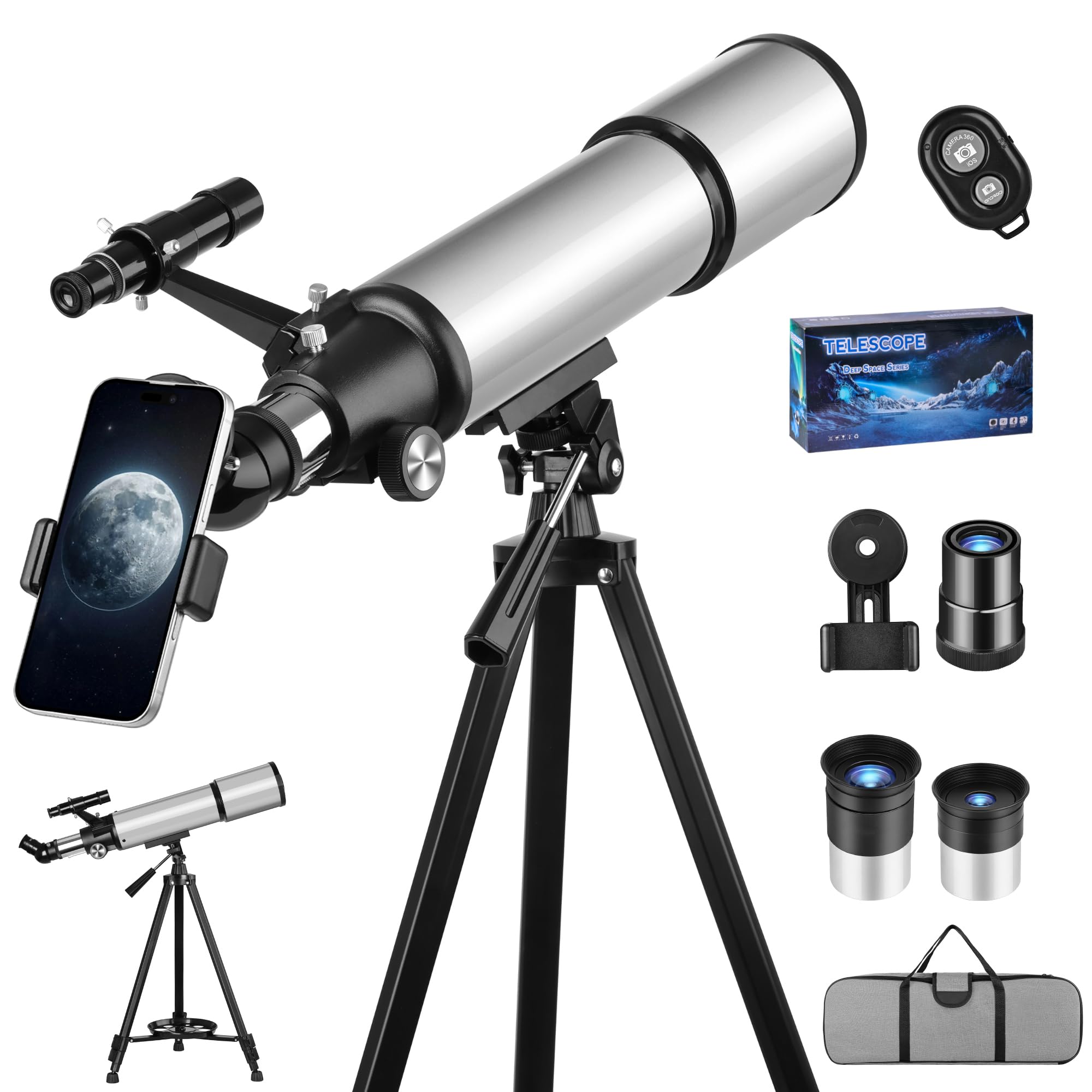 ESAKO Telescopio para niños y principiantes, telescopios portátiles de apertura de 2.756 in con 3 oculares, trípode ajustable en a