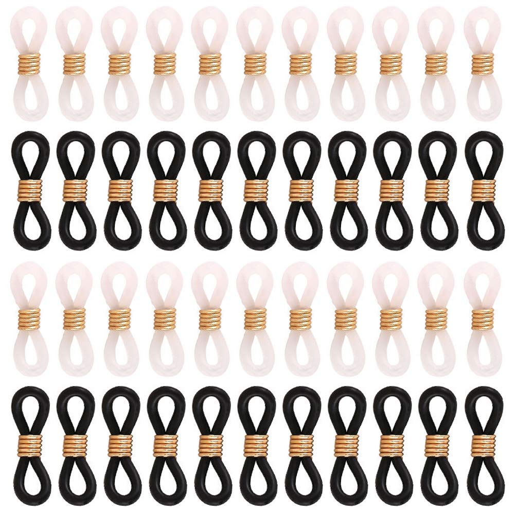 60 piezas de negro y blanco translúcido antideslizante extremos de goma retenedor conector soporte para cadena de gafas collar cad