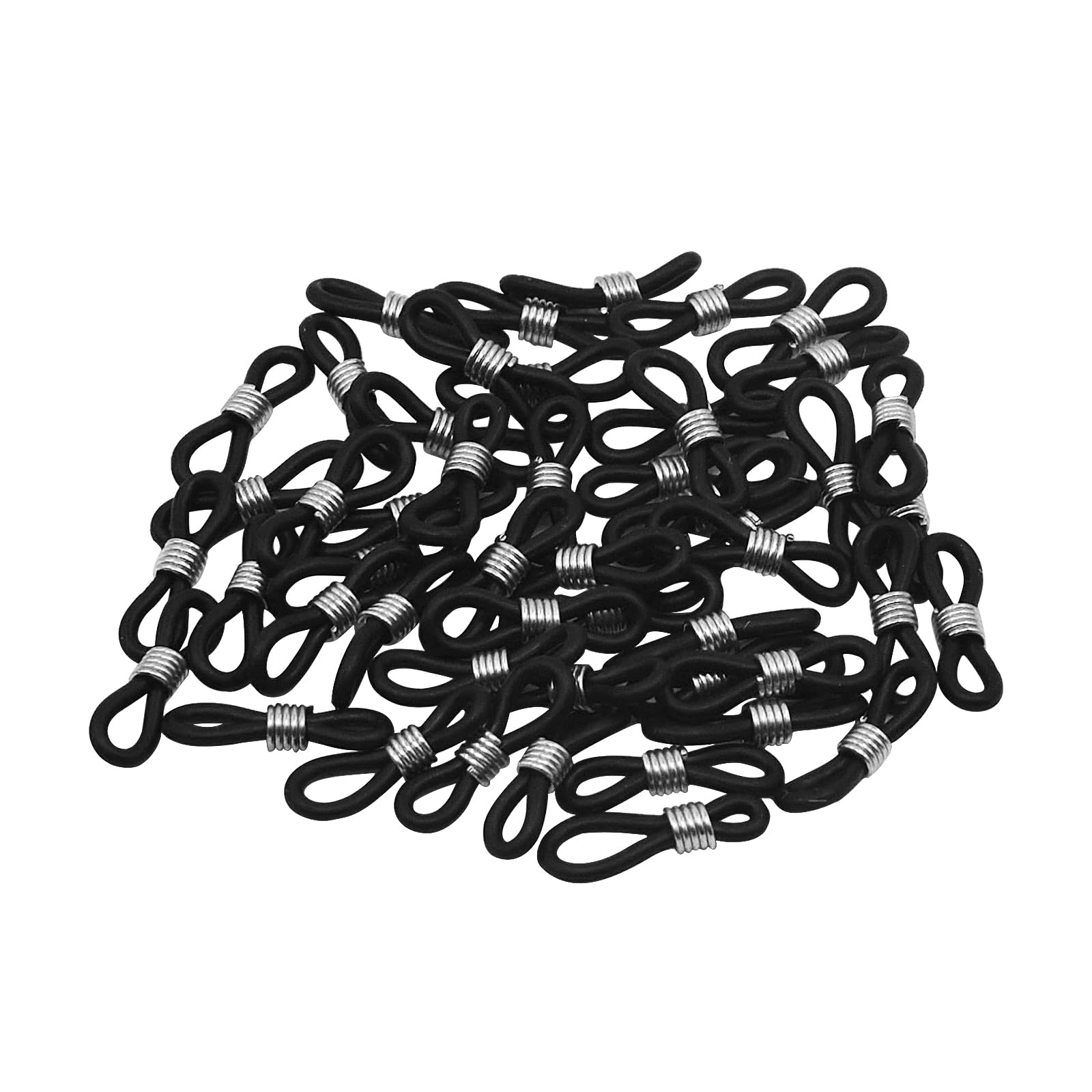 100 conectores de cadena para gafas, extremos de cadena de silicona antideslizantes ajustables para gafas de sol (negro y plateado