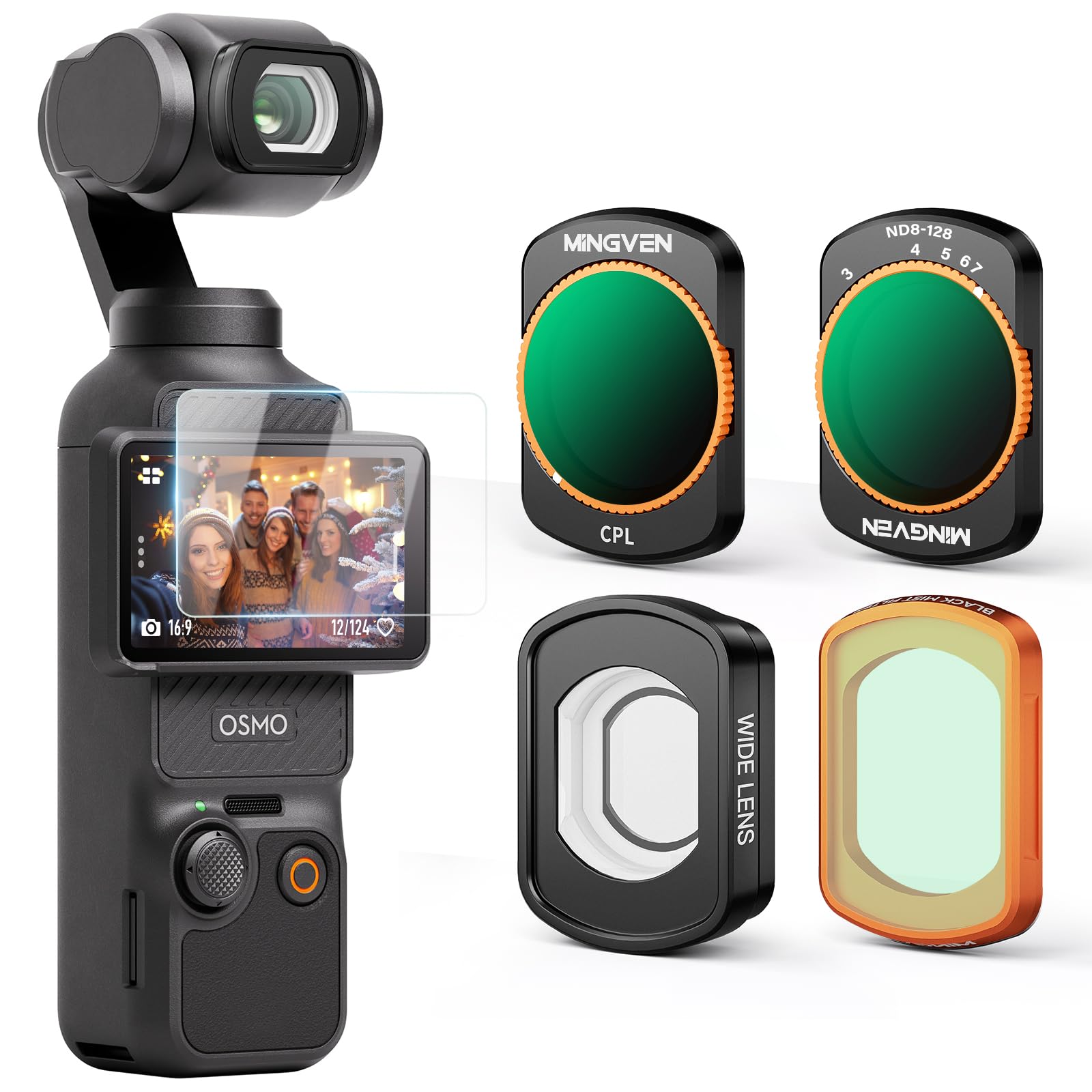Lente gran angular magnética + difusión negra 1/4 + CPL + Juego de filtros ND8-128 variables para DJI Osmo Pocket 3, paquete de 4
